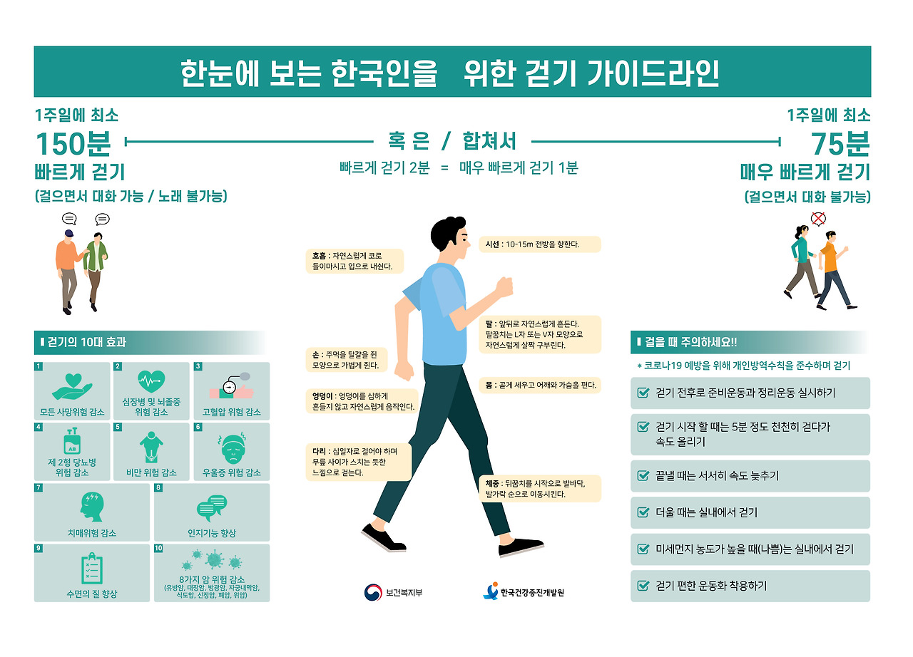 이 외 걷기의 효용성에 대해 잘 정리된 자료가 보건복지부와 한국건강증진개발원을 통해 발간되어 있어 첨부한다.