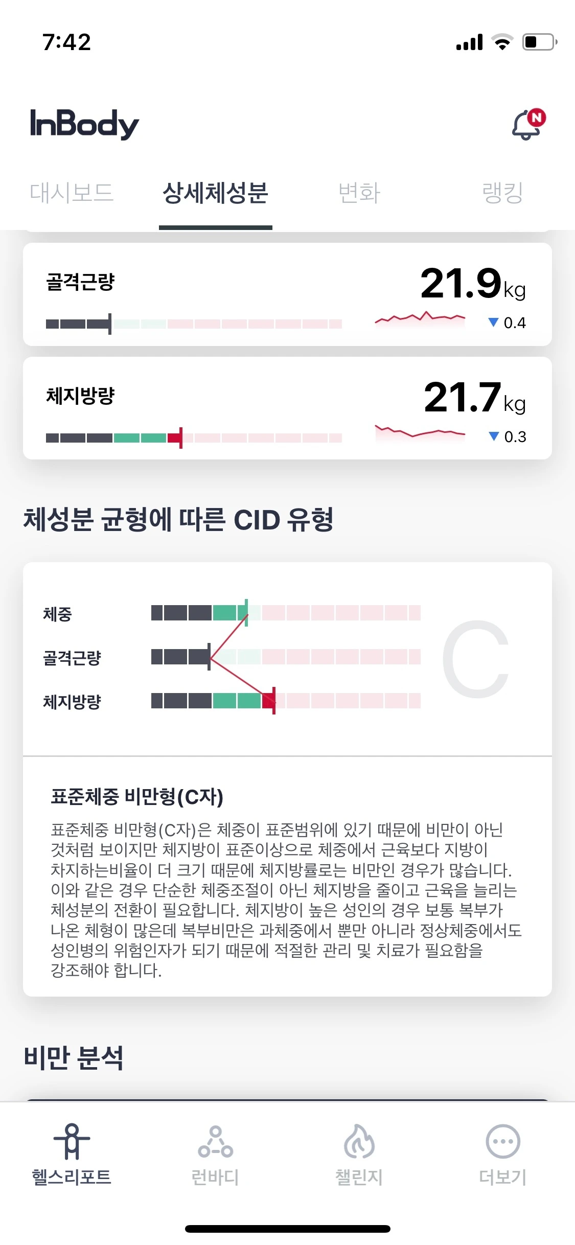 결혼 전까지 비만에 대한 걱정을 단 한 번도 해본 적 없었다. 워낙 활동적이어서 늘 뛰어다녔는데 초등학교도 중학교도 심지어 대학교까지 늘 많이 걸어야 갈 수 있는 거리에 있어 기본 체력이 좋았던 것 같다. 체력장도 늘 1등급을 유지했었으니까.. 그런데 연애 기간 남편과 함께 맛집 탐방을 하면서 살이 오르기 시작하더니 임신 때 최고치를 경험했던 몸무게가 지금도 별반 다르지 않고 나에게 머물고 있다. 운동센터나 기관에 모여서 하는 운동은 그다지 좋아하지 않고 혼자 걷거나 뛰거나 자전거 타기를 좋아하는 데 결혼 이후에는 늘 자가용을 타고 출퇴근하고 사무실 자리에 하루 종일 앉아 있으며 주말이면 피곤하다고 누워서 쉬기만 해서 근육량이 현저히 줄어든 것이 분명하다. 운동을 따로 하지는 않지만, 건강에 대한 관심은 높아서 코*트코에서 가정용 체성분 측정 기계도 거금을 들여 구입했다. 현재 내 상태를 말하자면, 체중은 정상범위에 있지만 골격근량은 표준이하고 체지방률은 표준이상인 표준형 비만형(C) 타입이다. 다시 말해 근육을 늘리고 체지방을 줄이기만 하면 건강하다고 할 수 있겠다. 아주 간단하지만 그다지 간단하지 않은 건강해지는 방법.