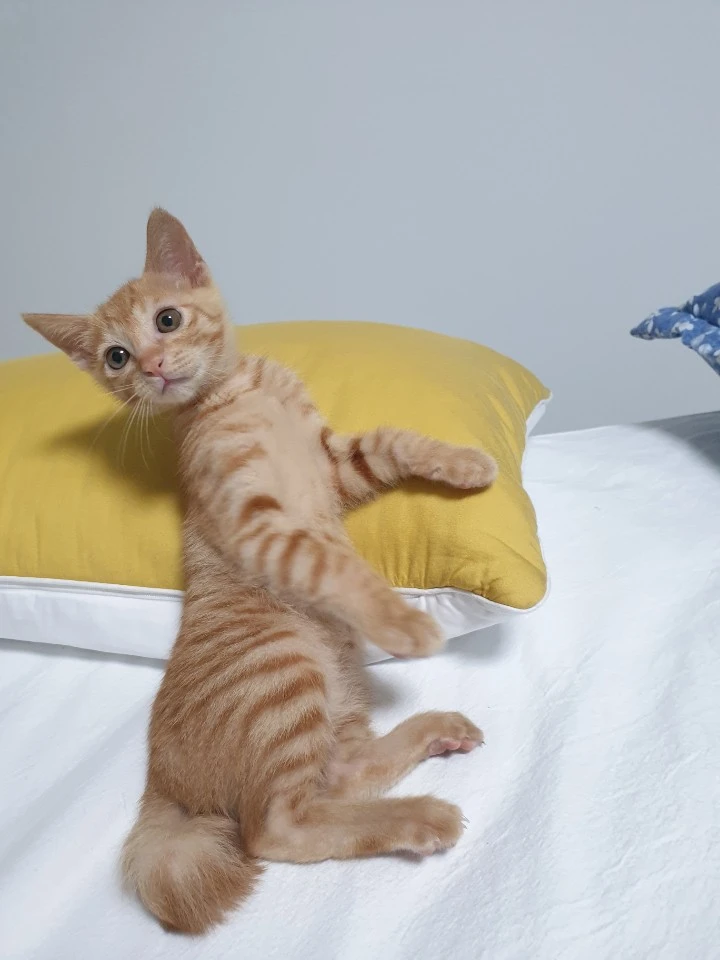 담이가 많이 외로워할 무렵 합사를 고민하게 되었을 때 정보를 얻고 자 들어갔던 고양이 오픈채팅에서 우연히 발견한 치즈 아깽이.