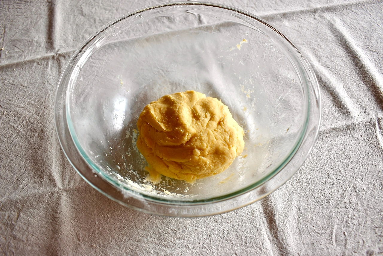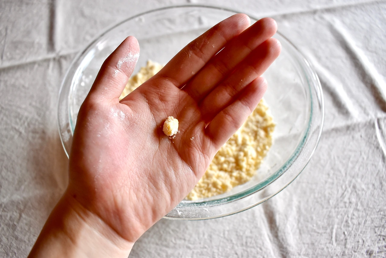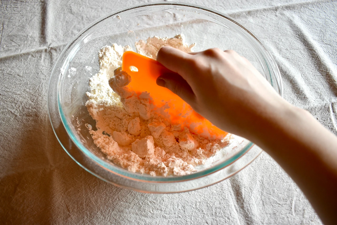 버터가 팥알 크기 정도가 되면 그만 다져주세요.