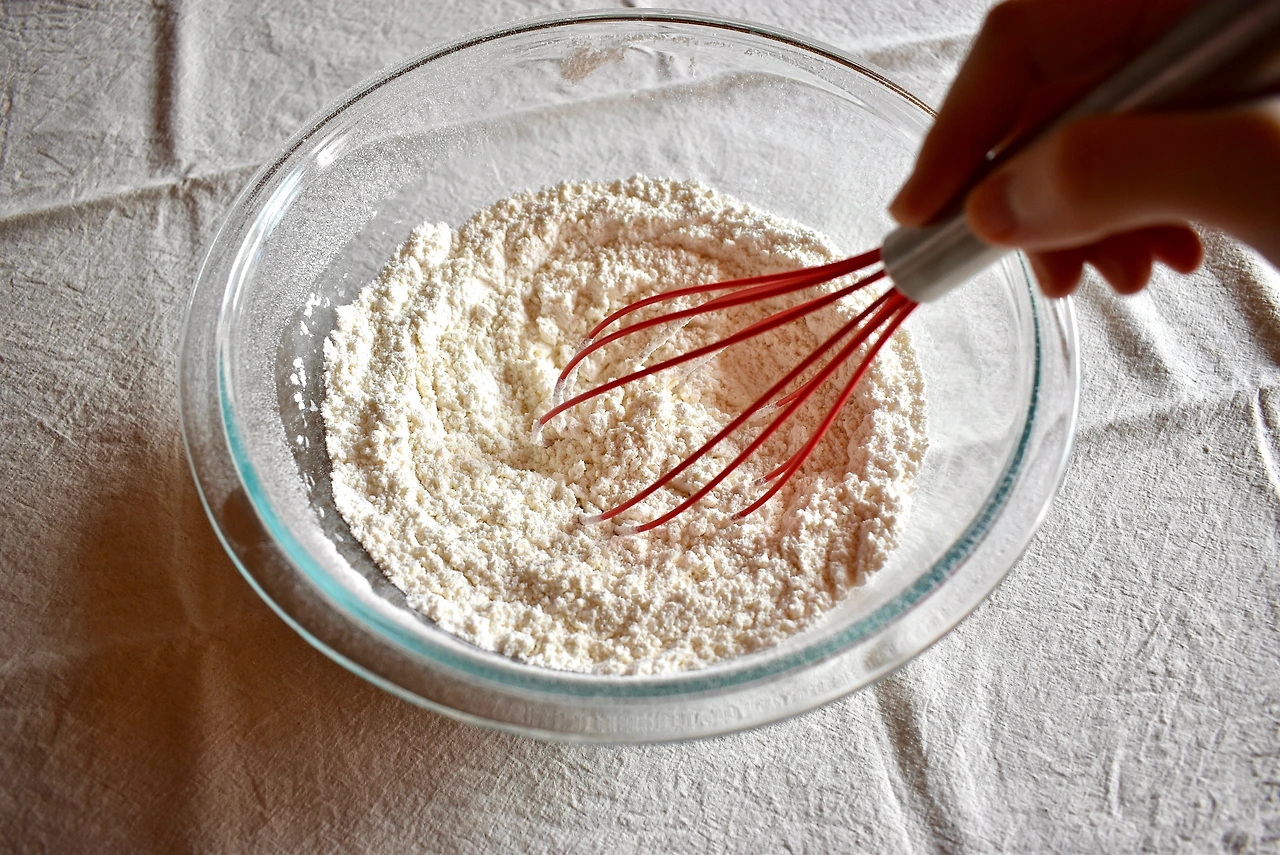 주걱으로 가루가 보이지 않을 정도로만 섞다가