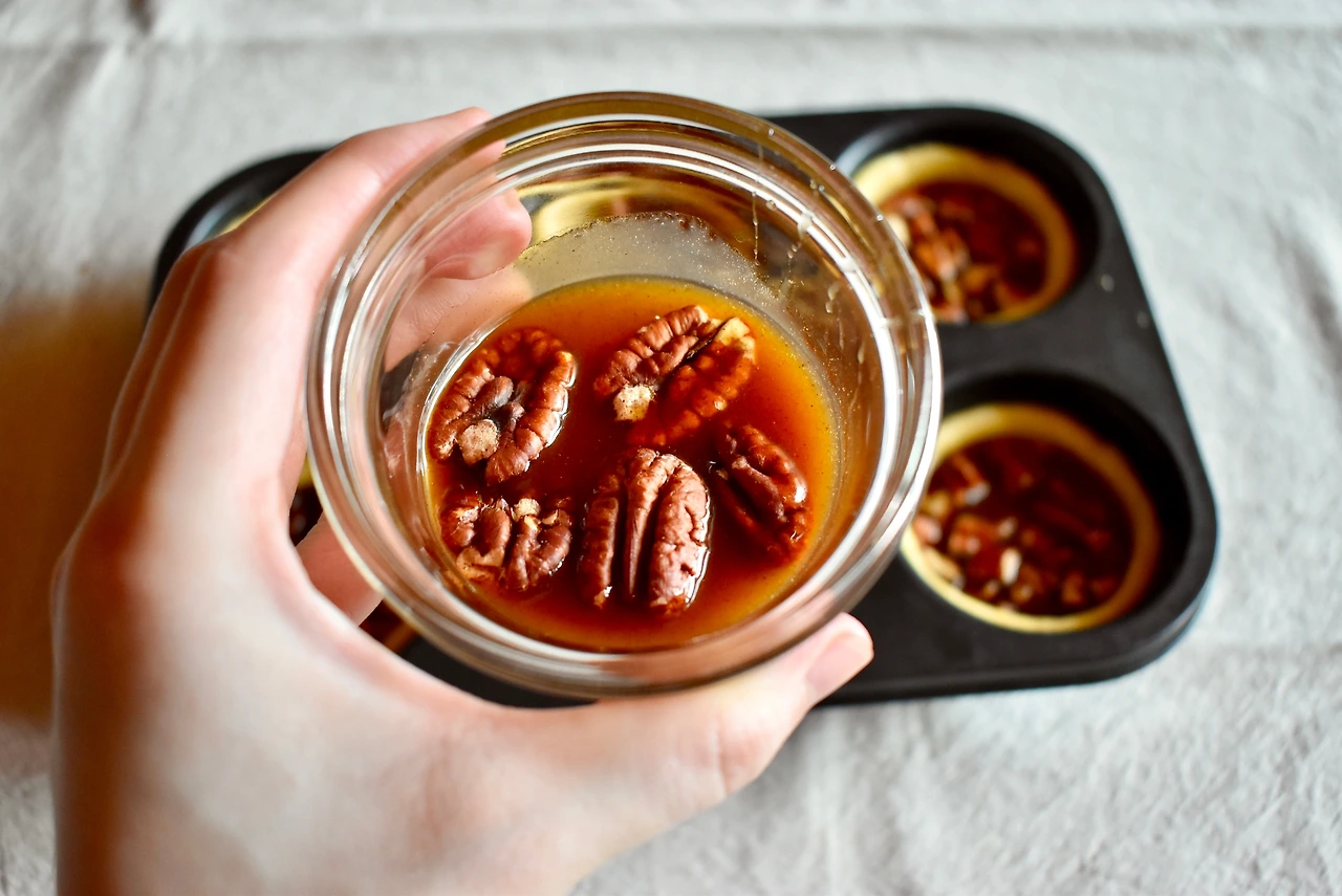 바닥만 채운다는 느낌으로 피칸을 넣어주세요. (약 2tsp)