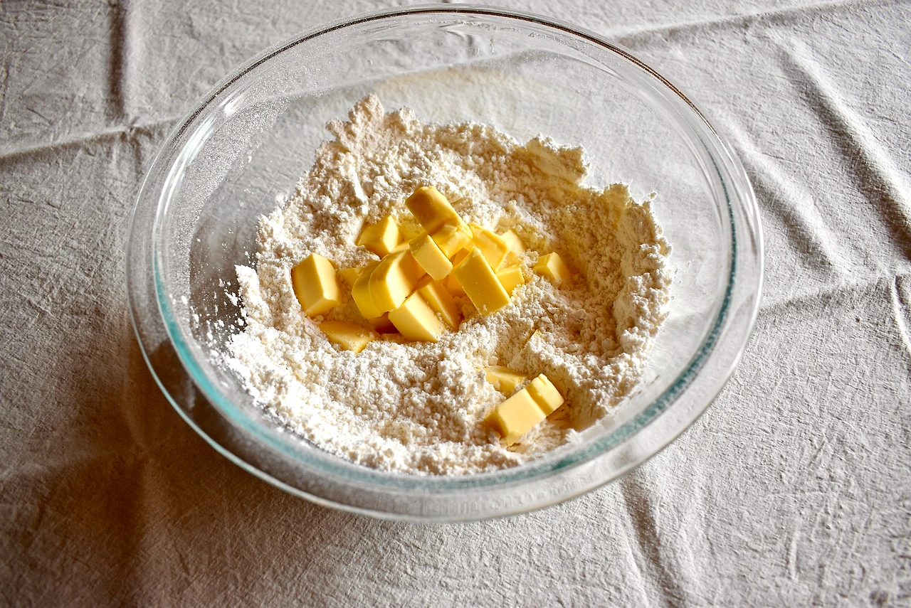 - 반죽에 들어가는 버터는 사방 1cm 크기로 깍둑 썰어서