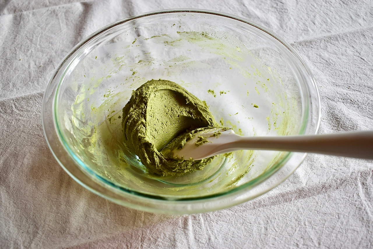 중력분, 말차가루, 베이킹소다를 체에 내려서 넣고