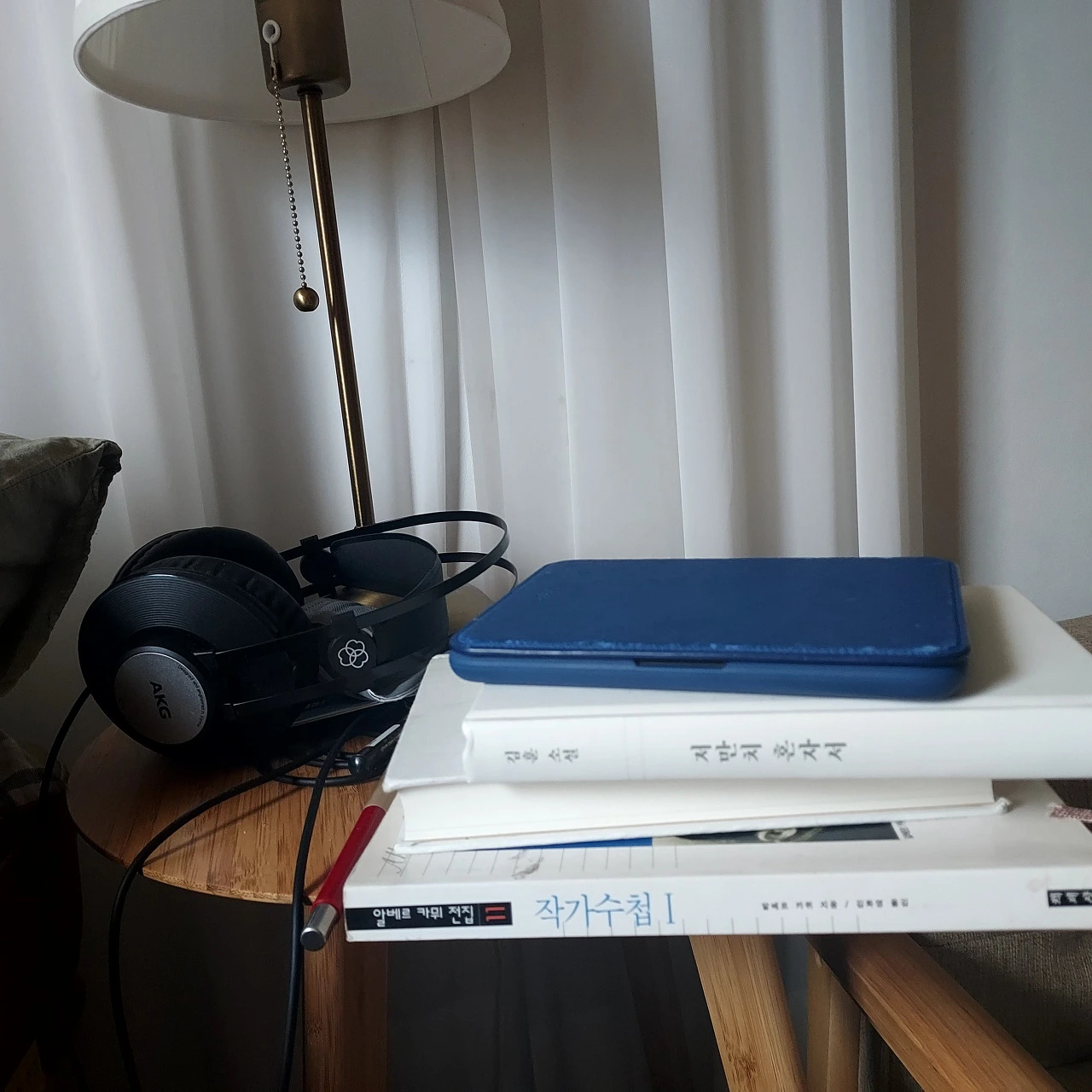 아이들은 어려서부터의 독서 습관과 코로나로 인한 반 강제적 환경 때문에 책과 친해졌다. 나는 사고 후로 거동이 불편해져 그나마 소일할 수 있는 책을 전보다는 더 보고 있다. 밤에는 식탁이나 침대맡에서 종이책과 전자책으로 소설이나 에세이 등을 보는데 작업 책상에서는 읽지 않는다. 이것 또한 하나의 원칙인데 글 쓰지 않을 때에는 연필을 들거나 공상하는 행동 이외에 어떤 것도 책상에서는 하지 않고 있다.