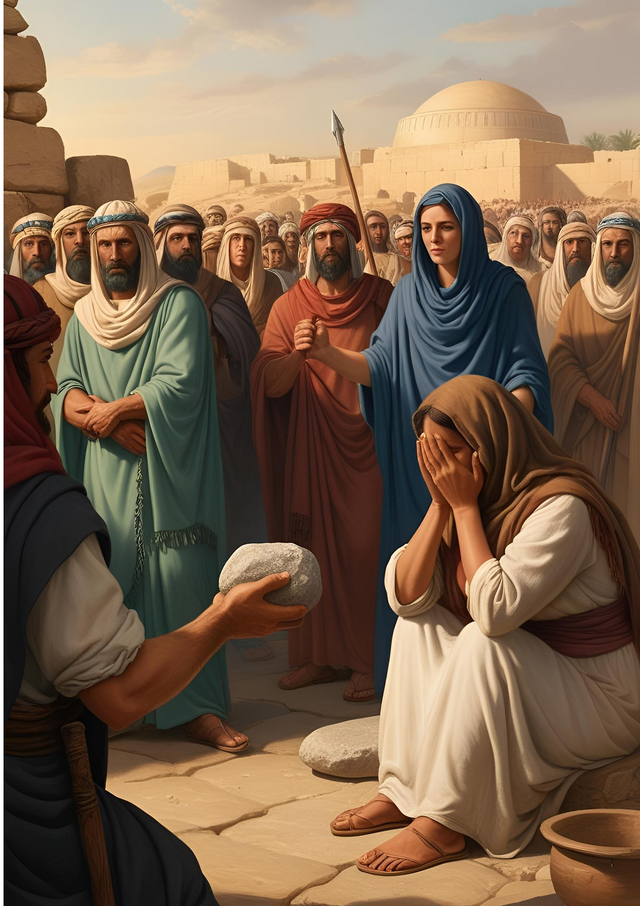 “랍비여! 이 여자는 간음하다가, 현장에서 붙잡혔습니다. 우리의 법에는 이런 여자들을 돌로 쳐 죽이라고 우리에게 명령하였습니다. 그런데 당신은 뭐라고 하시겠습니까?”