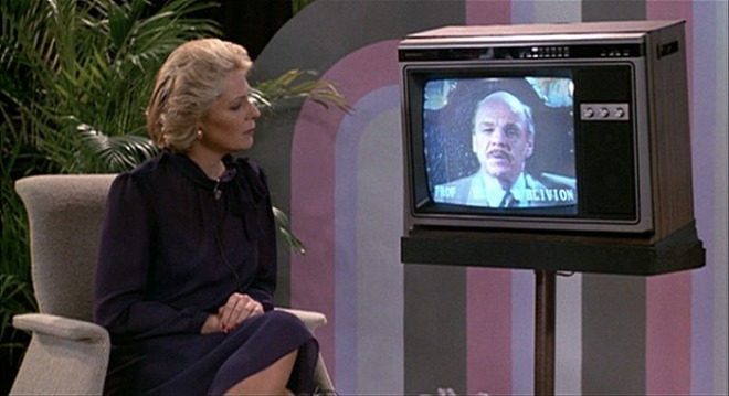 <비디오드롬>에 등장하는 인물 중 브라이언 오블리비언(이름이 참 의미심장하다) 교수가 있다. 이 캐릭터는 영화 내내 실물을 드러내지 않고, 대신 텔레비전 속 화면을 통해 자신의 생각을 전달한다. 영화의 후반부에는 그가 사실은 이미 오래전에 사망한 인물이었고, 미래를 예측해 자신의 생전 모습과 목소리를 녹화해두어 주인공과 소통하고 있었음이 드러난다.