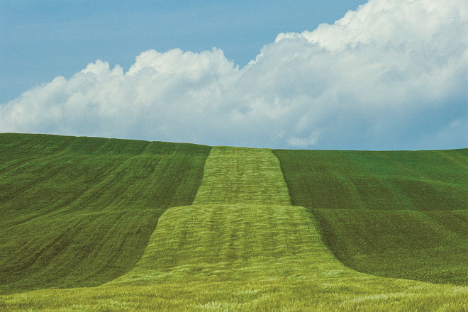 단순한 사진 한 장을 위해 수많은 답사를 했다는 점에서 그에겐 일종의 강박이 보이기도 하고, 많은 풍경의 정보 값을 여러 번 보면서 하나씩 배제해나가는 것이 그의 스타일일 것이라고 생각되며, 오히려 섬세한 시각을 가진 작가라는 생각이 들었다. 이를 보여주는 예시는 그의 사진에 보이는 세부적인 요소들인데, 멀리서 보면 그저 색깔의 덩어리들로 보이지만 자세히 보면 풀 한 포기 한 포기가 세세하게 보이기 때문이다.