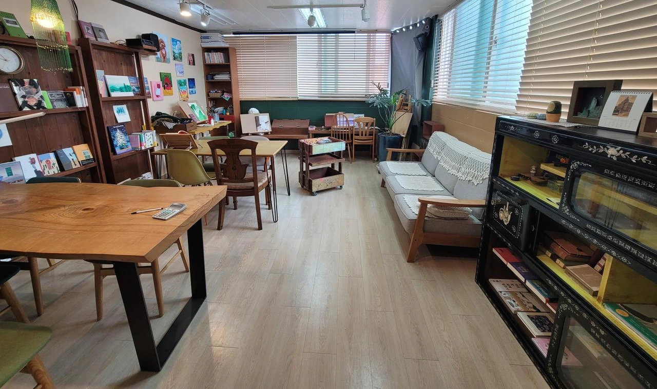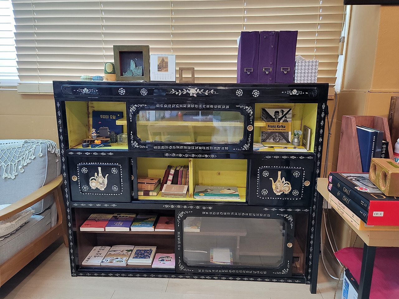 농장에서 여행을 마칠뻔한 자개 찬장이 책방에 잘 어울릴 거라는 걸.
