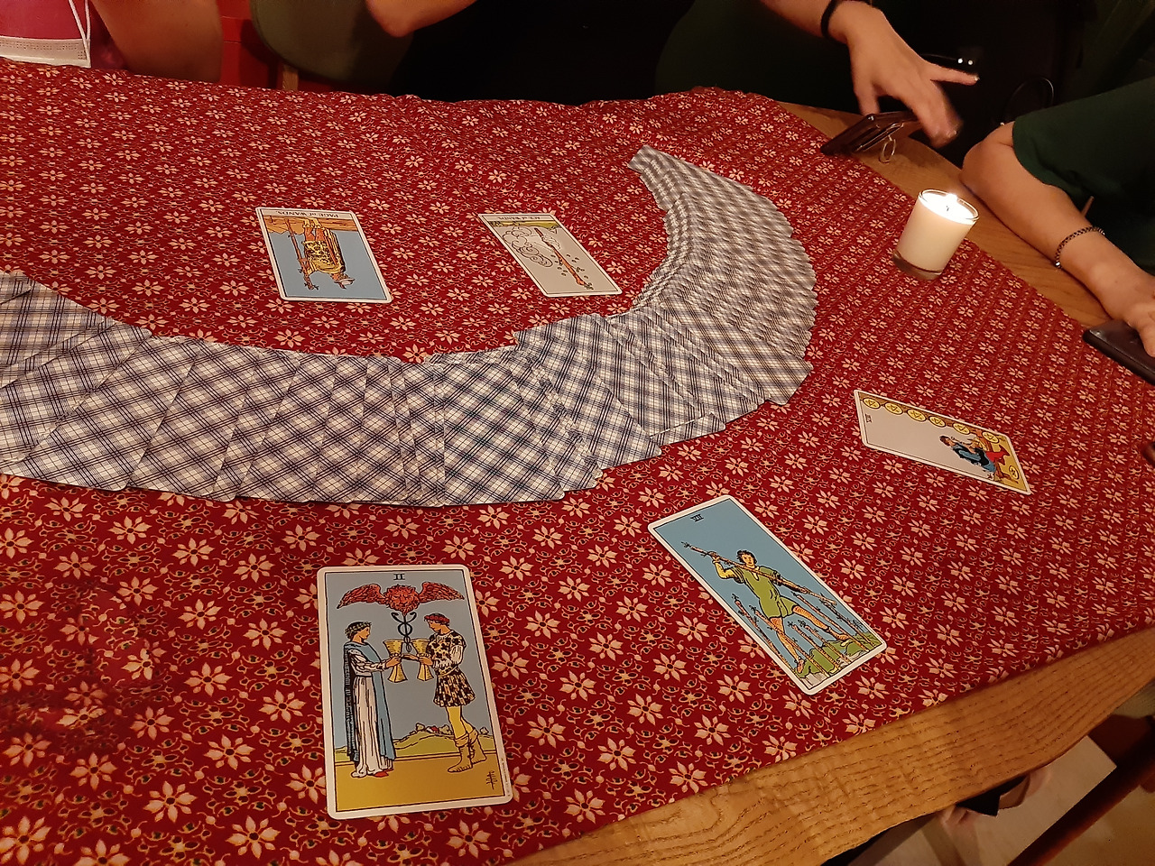 조명 아래에서 랄랄라 책방 김소라 작가님이 타로를 봐주셨는데 타로를 위해 태어난 물건처럼 붉은 담요 위 카드 패를 비추던 자태는 거만해 보이기까지 했다.