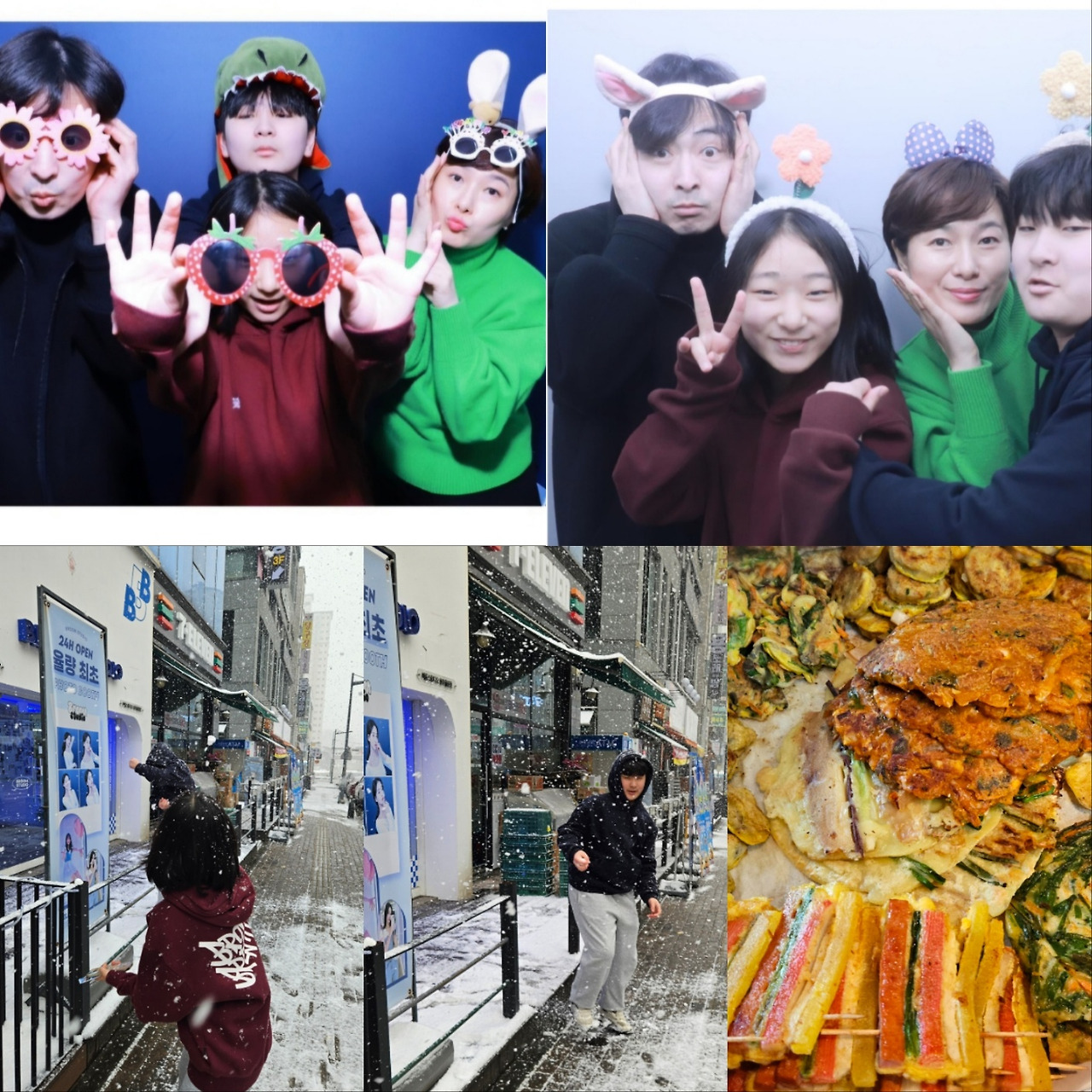 설날 영화를 보고 사춘기 아이들을 졸라 스티커 사진을 찍었다. 핸드폰으로 찍으면 됐지 무슨 스티커 사진이냐며 어깃장을 놓는 아들에게 게임 현질(게임상 아이템이나 재화 등을 부분 유료화 게임의 유료 아이템을 현금으로 사는 것을 의미하는 신조어)을 해주겠다고 꼬셔 숍으로 들어갔다. 머리띠를 쓰고 다소 과한 포즈로 표정을 짓는다. 얼마 만에 스티커 사진인가? 행복하다. 행복하다.