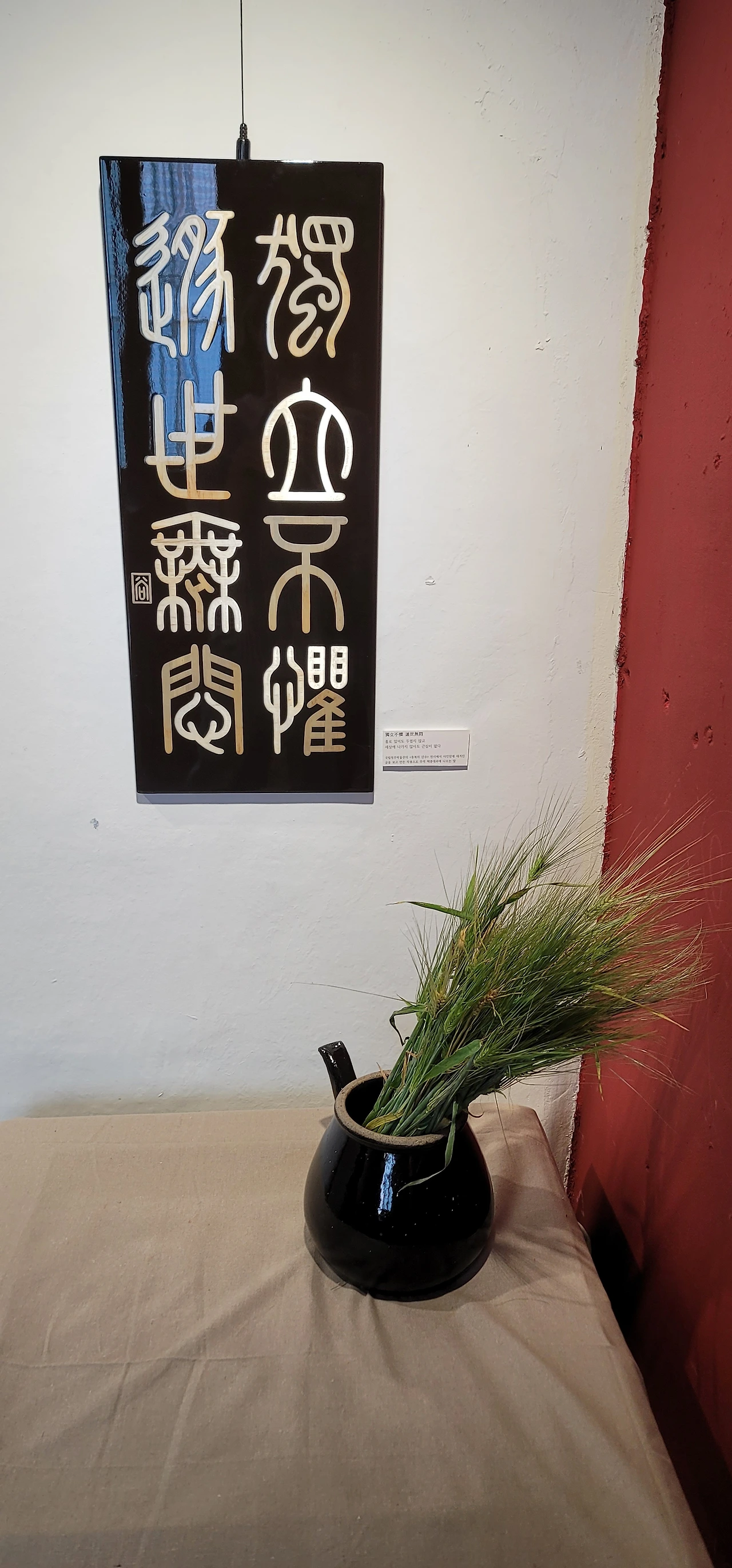 홀로 어깨가 다 굳어지도록 보릿대를 펴고 자르고 오려 붙이기를 반복하며 하나의 작품을 완성하기까지 들었던 상념을 저만치 밀어 두고, 보릿대에 온 집중을 다했을 그녀를 생각하니 마음이 찡했다.