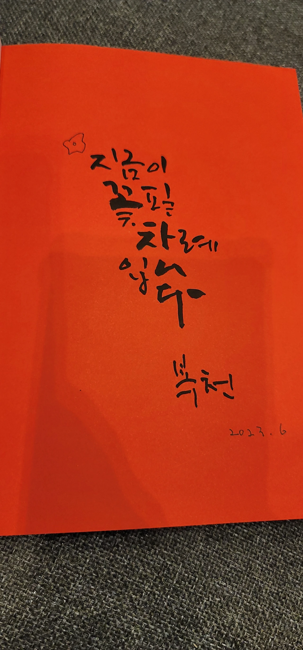 따뜻한 위로와 자신감을 북돋아 주는 말도 고마웠지만 빨간색 속지에 붓 펜으로 직접 써준 글귀는 날 눈 물 나 게 했다.