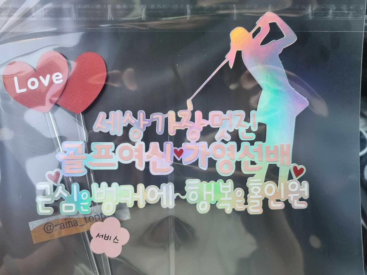 내가 제일 좋아하는 초록에 문구도 끝내준다. <세상에서 가장 멋진 골프 여신 가영 선배! 근심은 벙커에 행복은 홀인원!> 이것도 모자라 부제는 <골프 여왕 꿈꾸는 40대 미녀 기자 '화제'>이다. 참아왔던 눈물이 터지고 말았다.