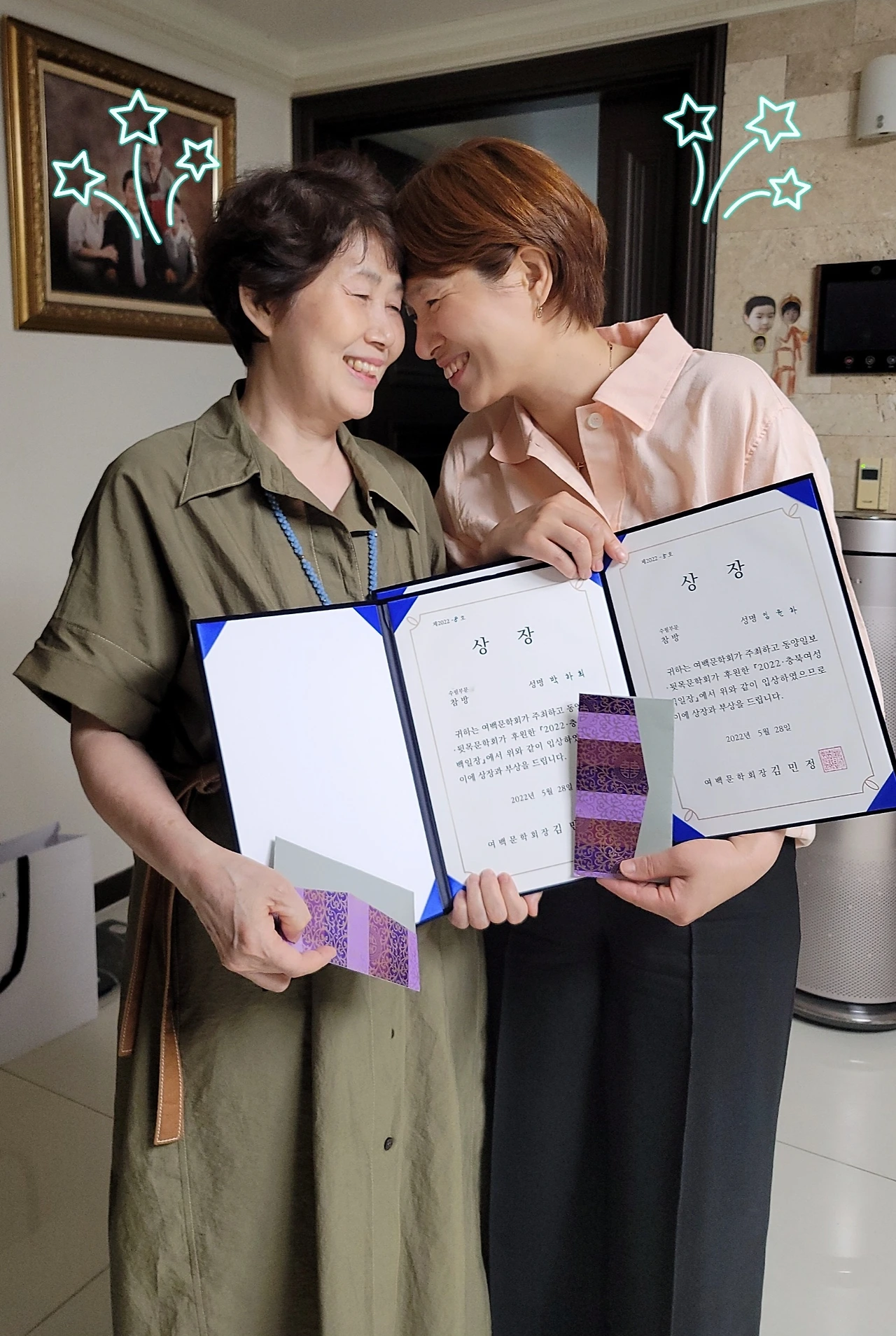 여생백일장에서 모녀가 나란히 수상을 하다.