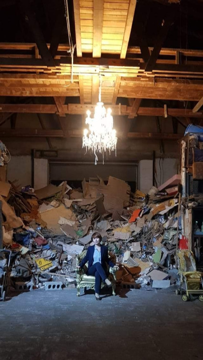 지금 다시 보니 참 쑥스럽기만 한 한 장의 사진. 비엔날레가 끝나면 곧 소멸되어 버릴 역사의 순간을 놓치기 싫어 잔뜩 포즈를 취하고 강홍석 작가의 작품 앞에서 사진을 찍었다. 60년의 시간을 고스란히 견뎌온 먼지, 켜켜이 쌓인 어마무시한 쓰레기를 예술로 승화시킨 작가에게 느꼈던 감동이란......