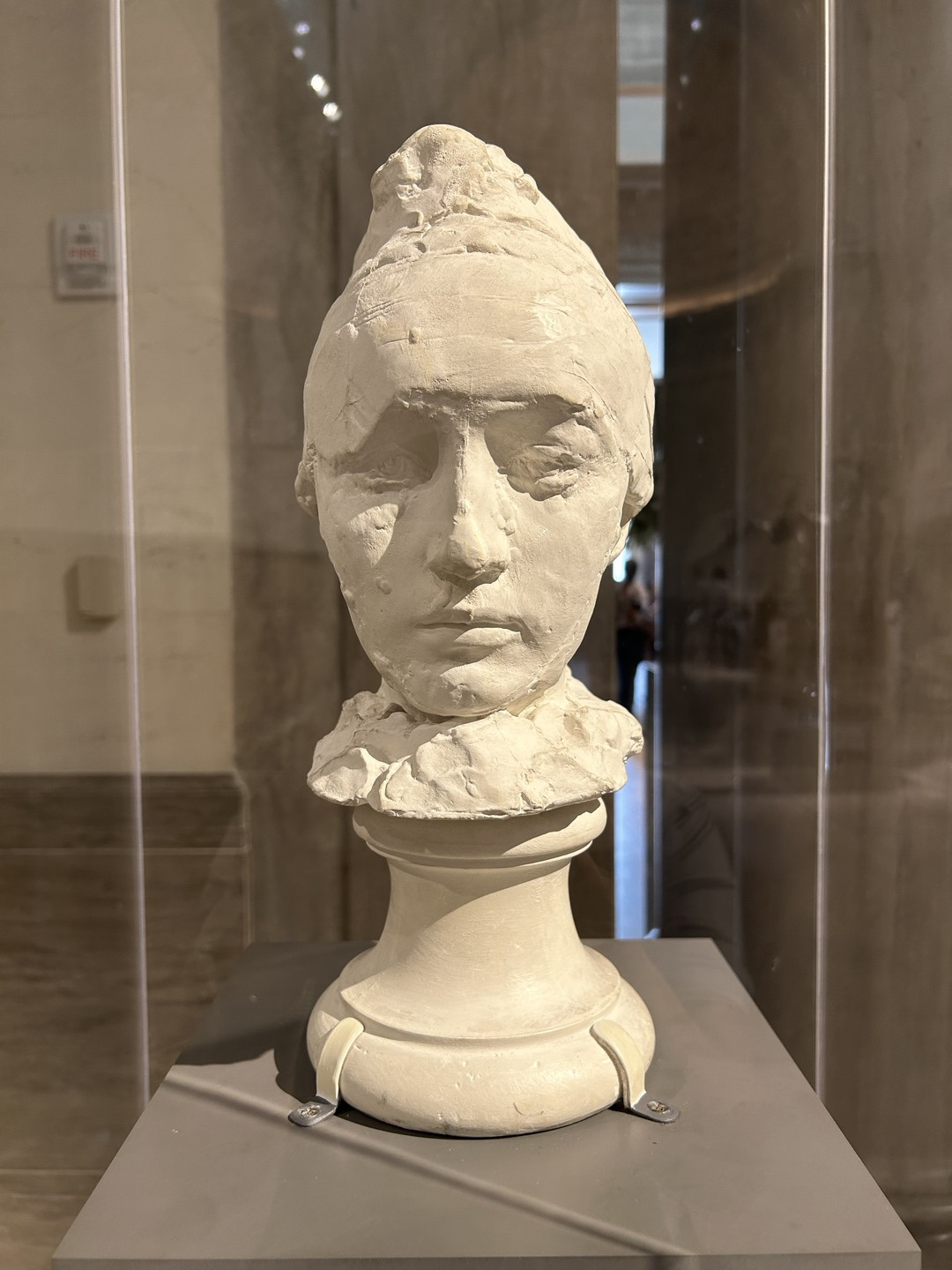 시카고에는 로댕이 빚은 카미유 끌로델의 두상이 청동으로 주조되어 있었다면, 여긴 로댕이 점토로 빚은 두상이 유리관에 전시되어 있다. 그리고 끌로델의 두상과 나란히 끌로델이 빚은 로댕의 청동 두상이 놓여있다. (조각품의 경우 보통 12개 까지는 진품과 같다고 본다. 그 이상이 되면 형태가 좀 망가진다. 청동조각의 만드는 순서는 작가가 점토로 형태를 빚은 후, 석고틀을 만들고 주조공이 청동을 붓는 것이다. 그래서 조각상 아래 에디션 숫자가 있는 것이다(출처:화줌마 <Art Story>).