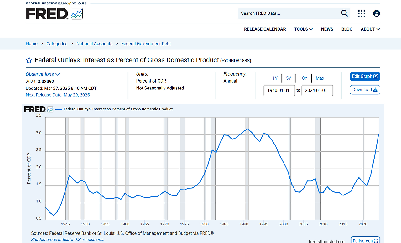 재정적자의 규모보다 더욱 중요한 것은 결국 연방 정부의 이자비용 부담일것입니다.