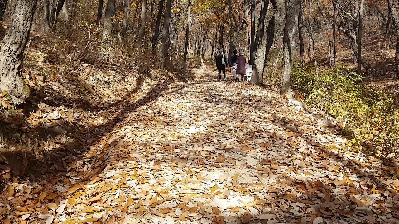 낙엽 밟는 발자국 소리가 소름처럼 귀를 간지럽혔다. 보드랍고 편안한 폭신한 낙엽 포장(?) 길의 느낌이 발바닥을 타고 올라왔다. 길 위에 켜켜이 쌓여있는 낙엽들이 내뱉는 진한 낙엽 향이 숨을 들이쉴 때마다 코를 거쳐 가슴속까지 파고들었다. 온몸의 오감을 통해 전해오는 낙엽 숲길의 기분 좋은 자극은 걷는 이의 머리까지 몽롱하게 만들어 버렸다.