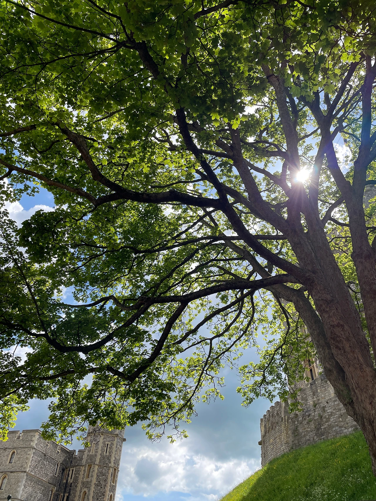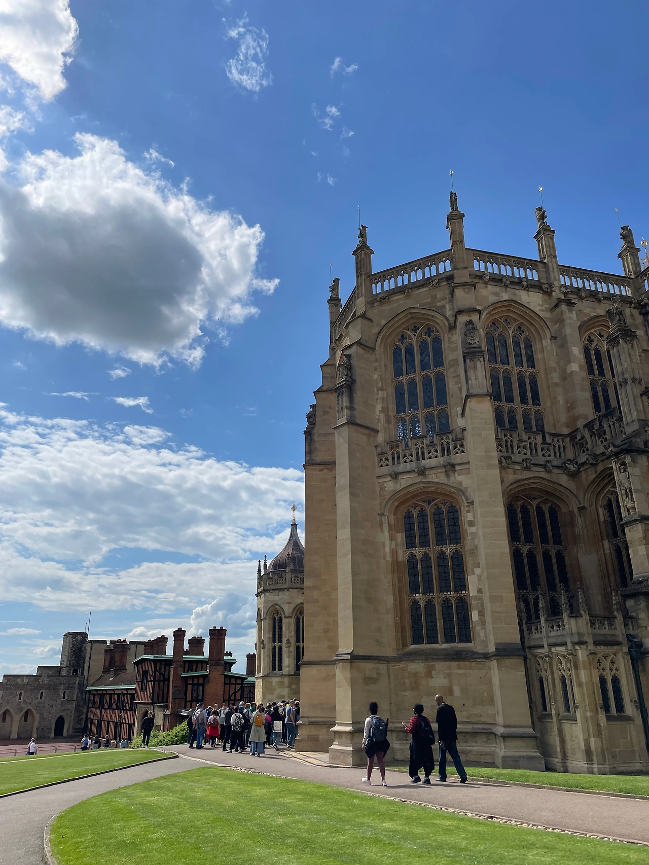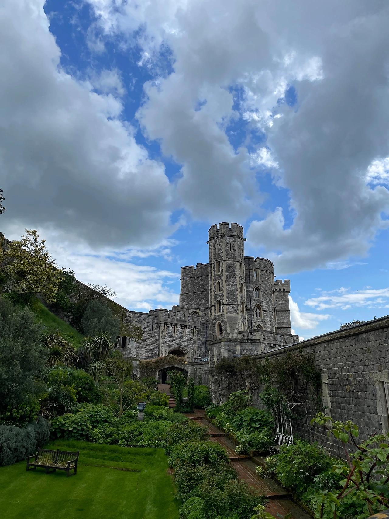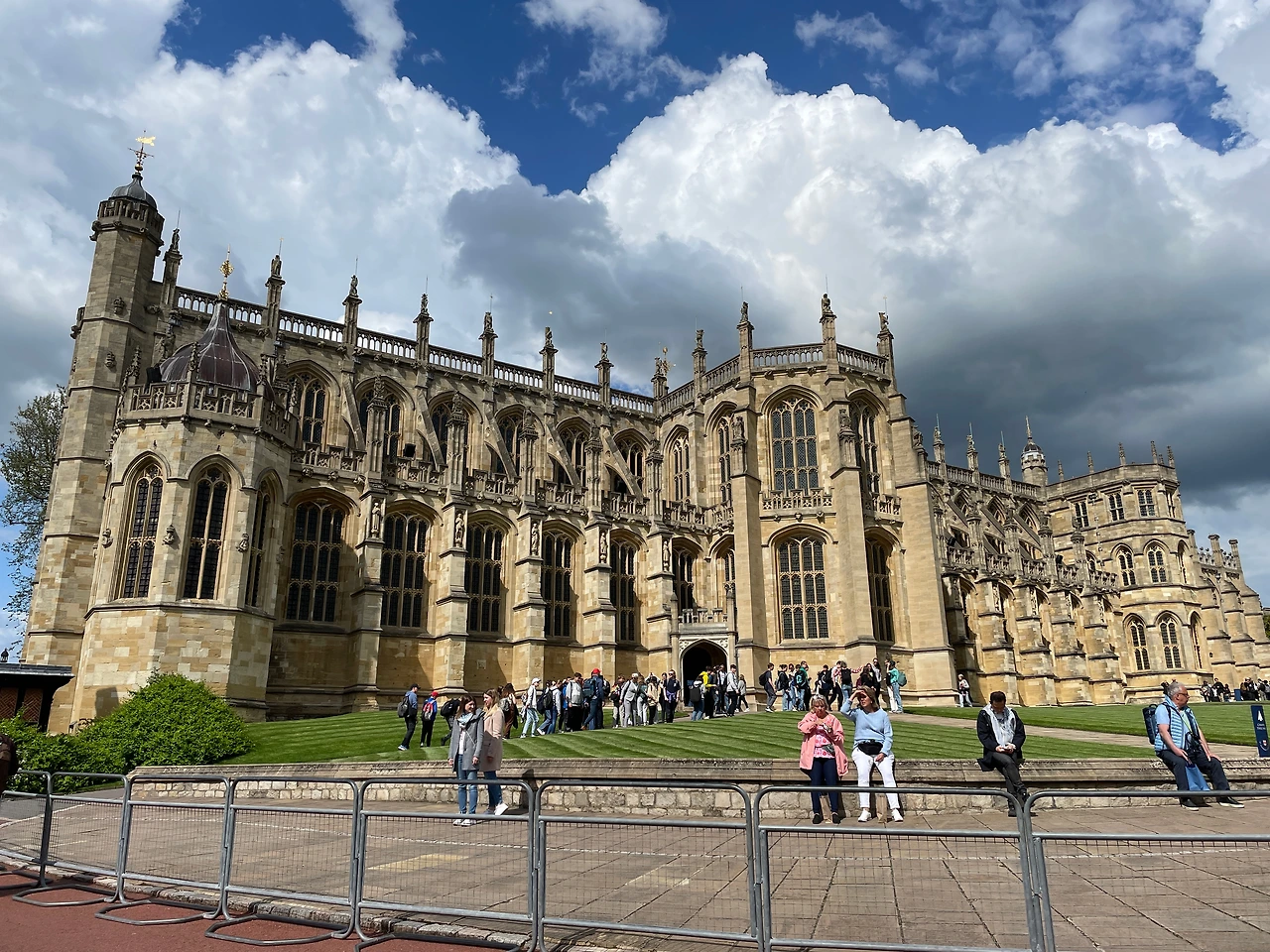 히드로 공항에 짐을 맡기고 가장 먼저 우버를 타고 찾아간 곳은 윈저성이었다. 윈저성은 히드로 공항에서 약 20분 정도 택시를 타면 도착한다. 영국 왕실 소유의 고풍스러운 성이다. 시 외곽이라 그런지 가는 길의 풍경이 목가적이었는데 성 주변에도 녹음이 우거져 있었다. 풍경화에 나오는 것처럼 생긴 구름의 모양도 감탄스러웠다. 런던을 여행하면서 알게 된 것이지만 런던의 구름은 형태가 뚜렷해서 드라마틱한 인상을 주는 때가 많았는데, 이 날은 날이 맑아서 그런지 성의 풍경이 더욱 드라마틱하게 느껴졌다.