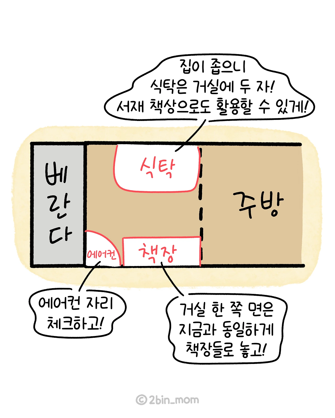 저희는 35평 거실에 가로로 있던 책장을 세로로 세워 공간을 확보했습니다!