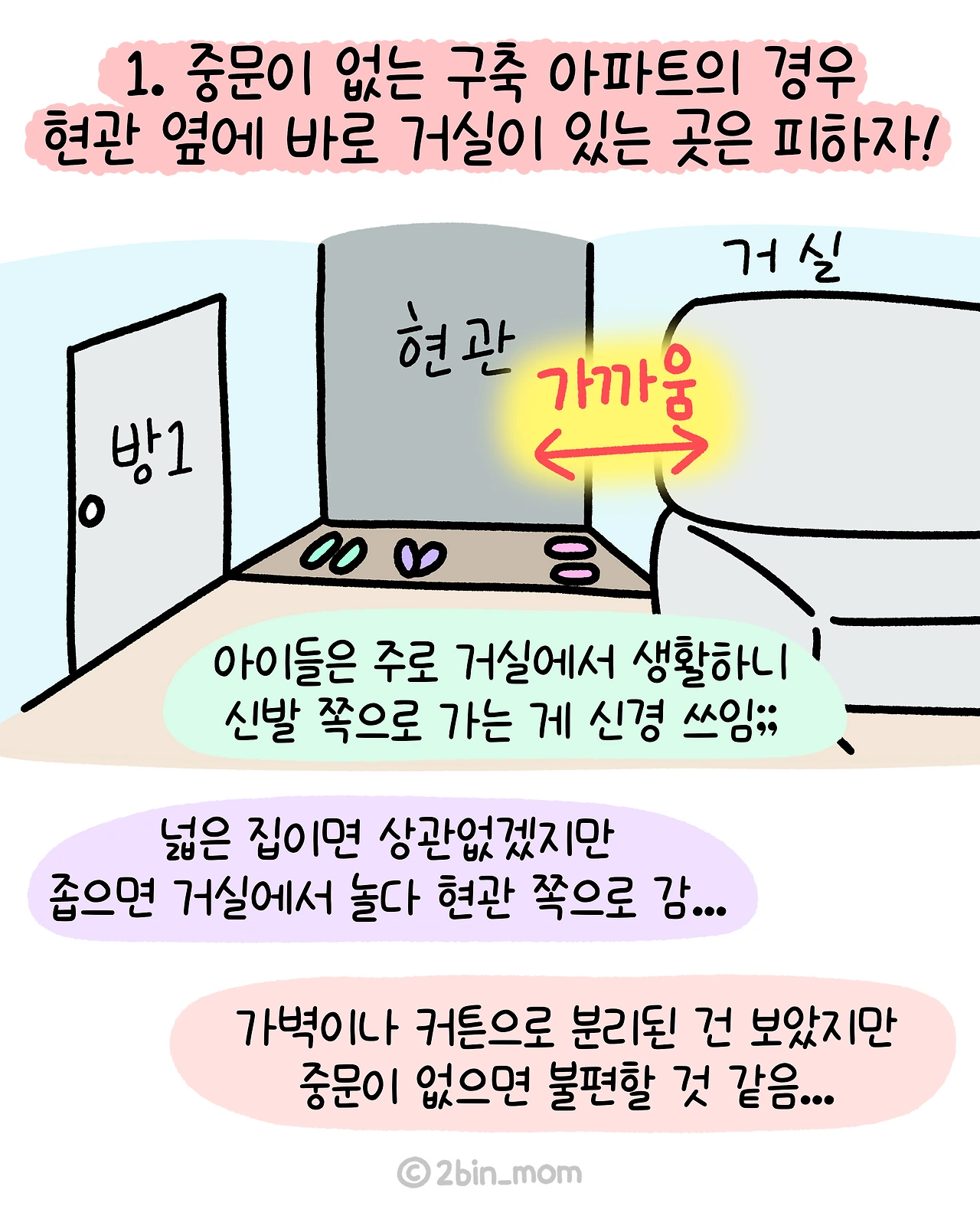 현관 옆에 바로 거실이 있는 곳은 피하자!