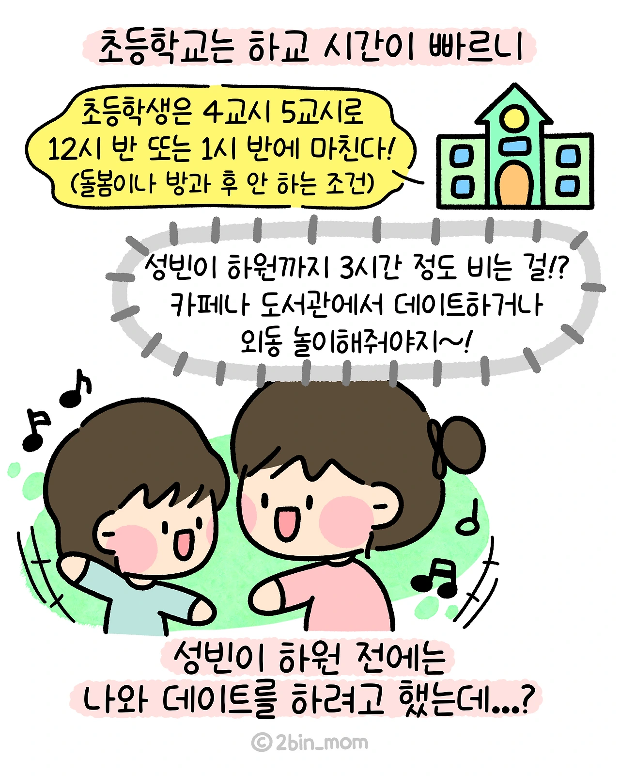 (성빈이 하교 후 함께 피아노 학원 가야 해요)