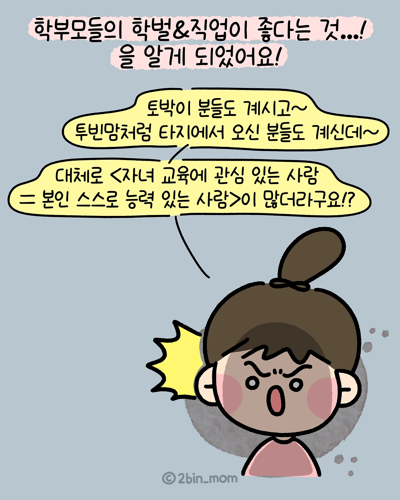 학부모들의 학벌&직업이 좋다는 것을 알게 되었어요