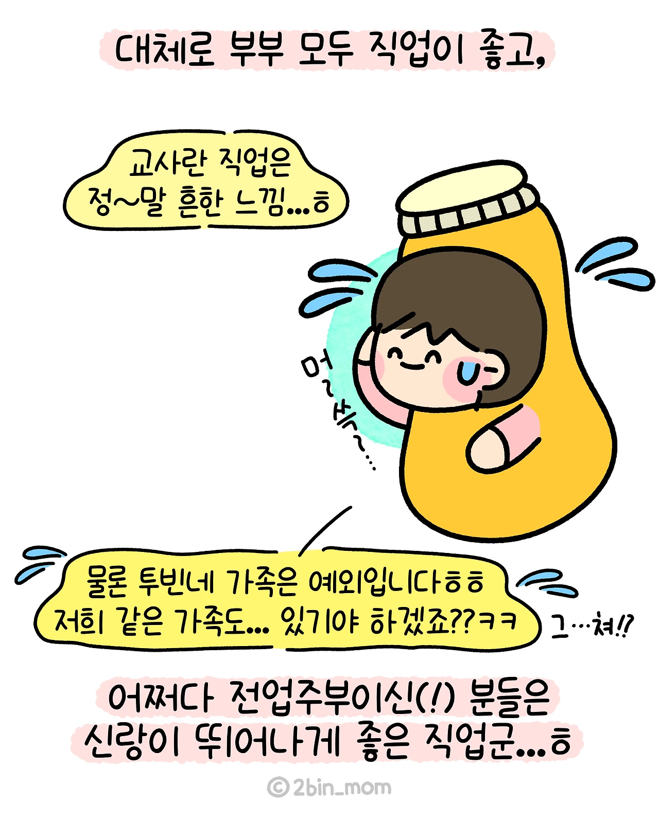 아이 때문에 알게 된 학부모들이 대체로 직업이 좋으시더라구요...!