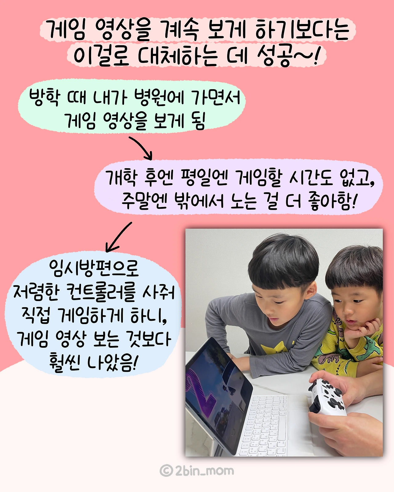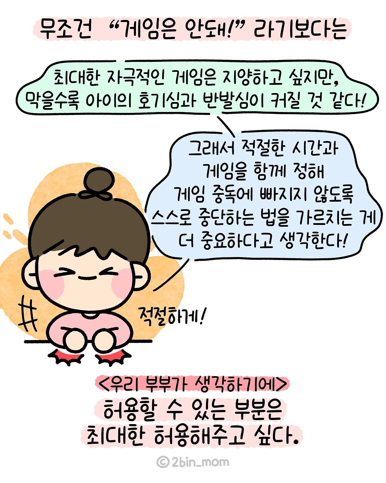 무조건 “게임은 안 돼!” 보다는 허용할 수 있는 부분은 최대한 허용해주고 싶은 마음이 크답니다!