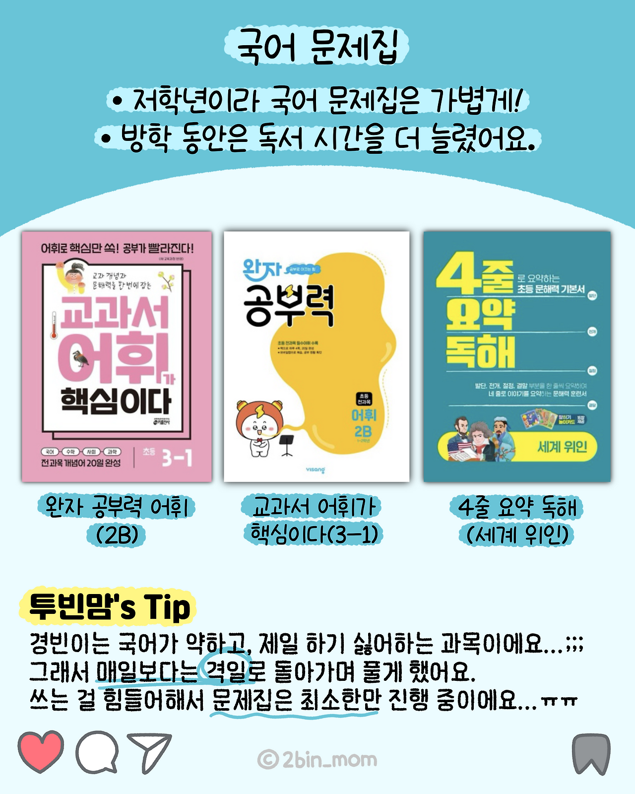 초2 겨울방학, 학원 없이 엄마표로 이 정도 했어요