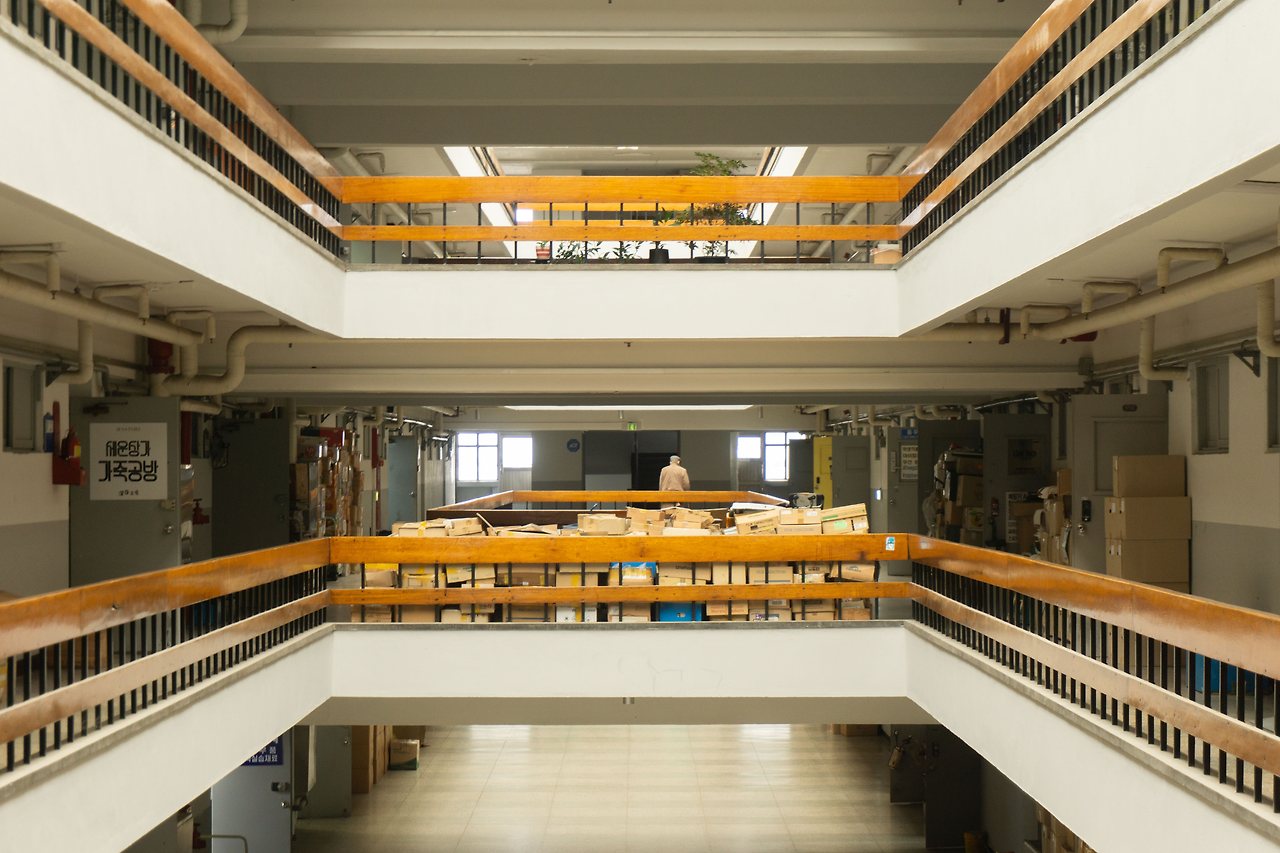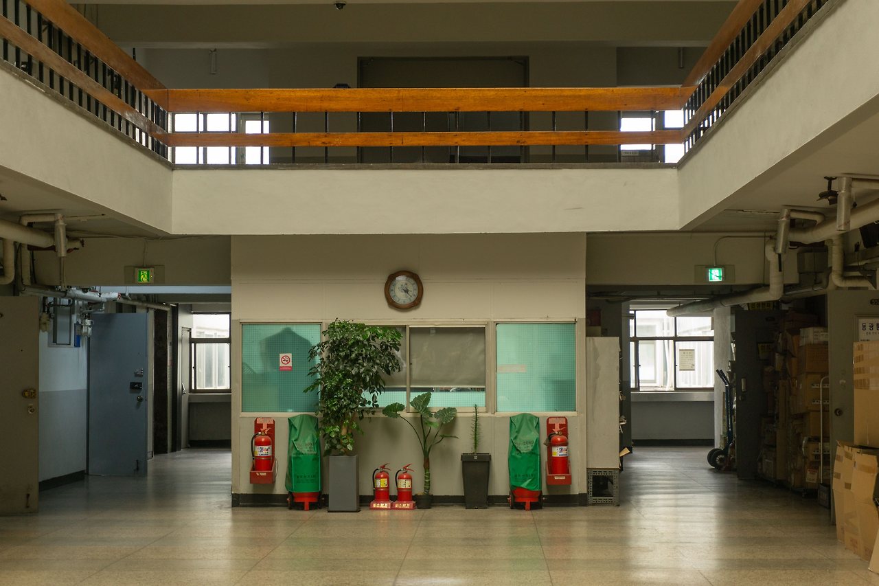 건물 안에도 사진 스팟이 있습니다. 바로 세운상가 안에 있는 현대상가인데요, 건물 공간의 중심이 뚫려있는 구조와 하늘을 그대로 보여주는 천장으로 설계된 독특한 구조는 사진을 좋아하는 사람들에게 충분히 매력적인 공간입니다. 어딘가 독특하면서도 익숙한 이유는 영화에도 많이 등장해서 일까요? 이 곳에서 영화나 드라마 촬영도 종종 이루어진다고 합니다.