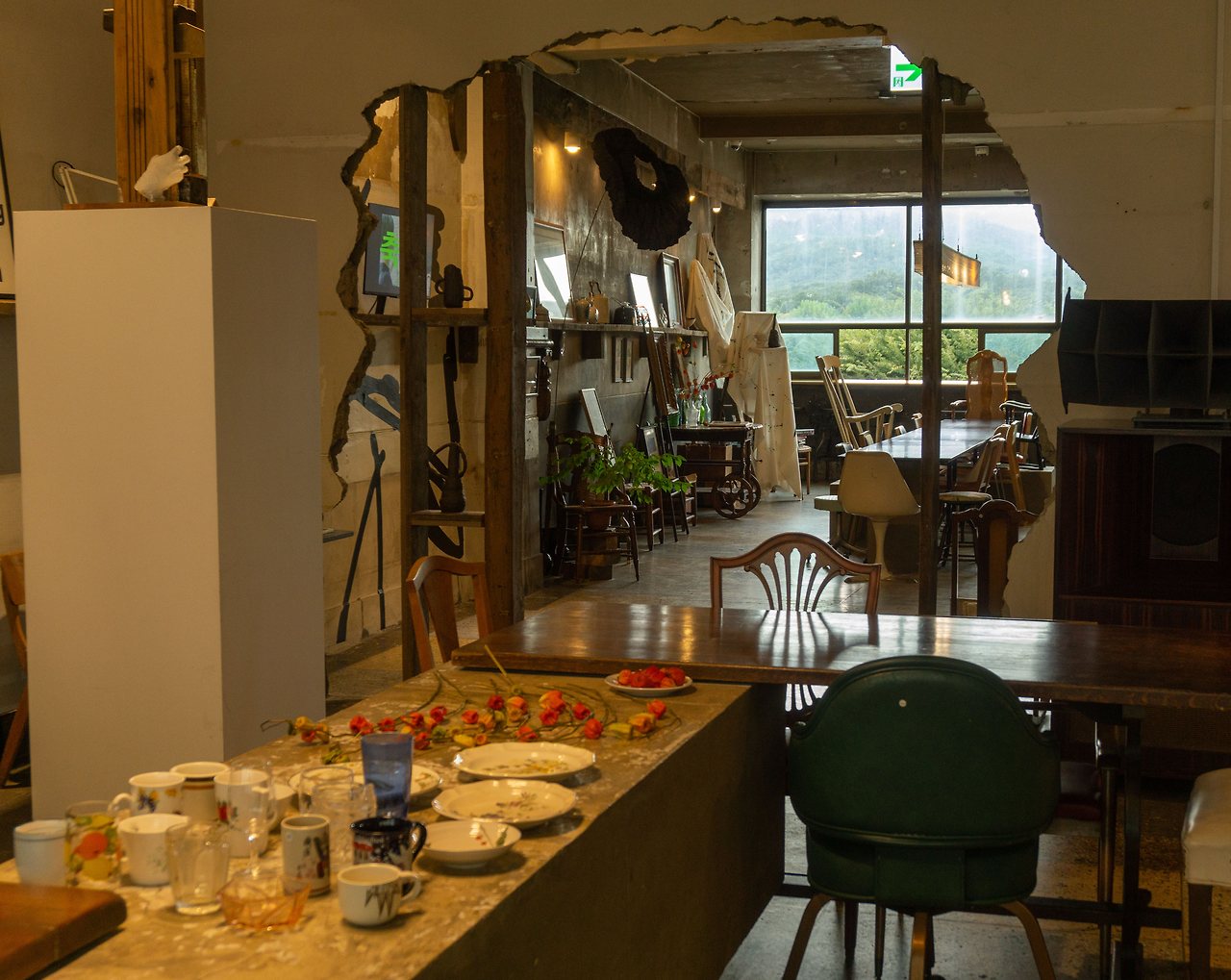 -조형물과 인테리어 오브제, 가구와 찻잔, 그릇들이 카페가 아니라 미술관에 온 느낌을 준다.