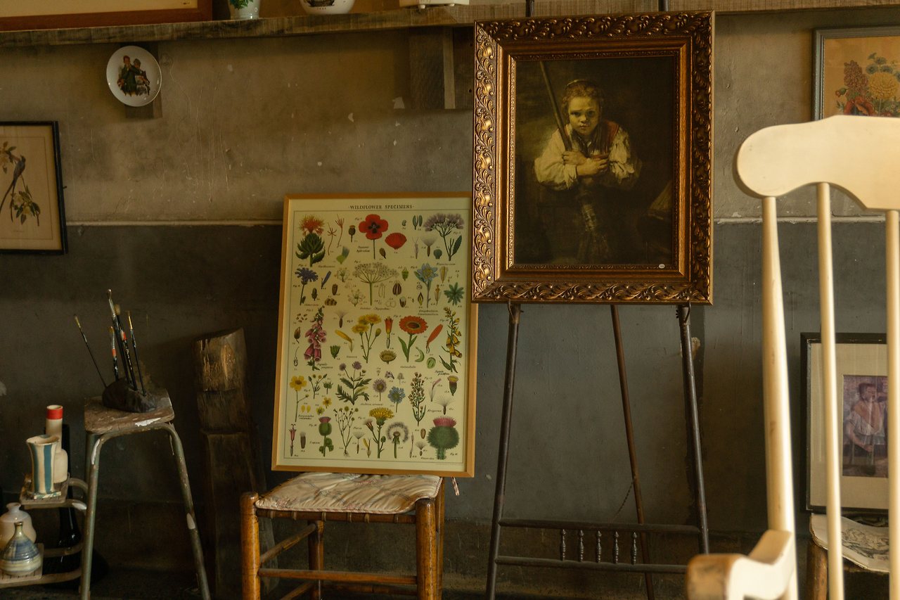 마지막 루트로 소개해 드릴 카페인 루이스의 사물들입니다. 유럽 빈티지 풍의 가구들과 그릇, 컵들은 순간이동과 시간여행을 해 과거 유럽 예술가의 작업실에 놀러 온 듯합니다.