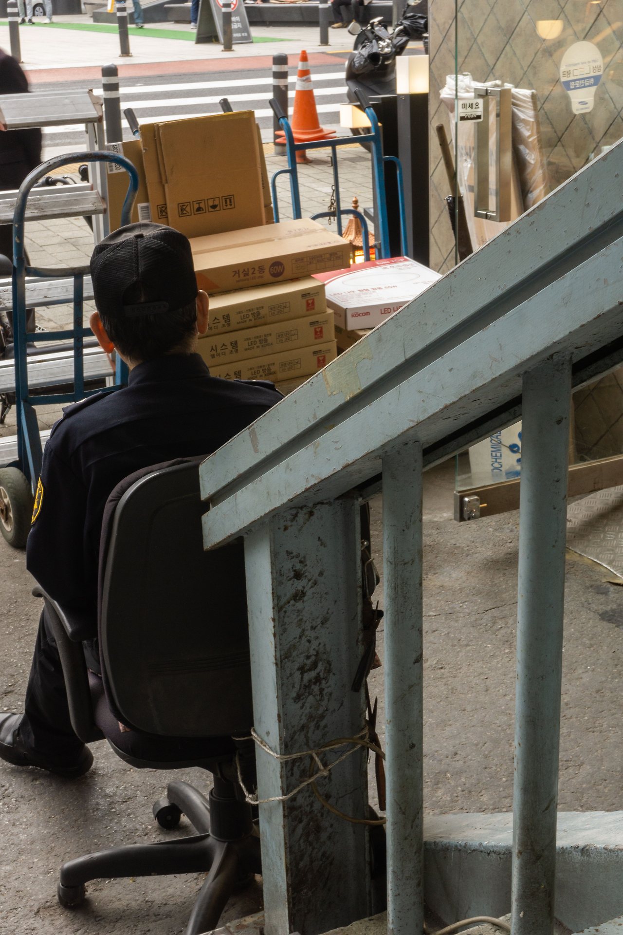 세운 상가 내부도 구경해보았어요. 오래된 건물 만큼이나 오래된 물건들. 곳곳에서 파는 레트로한 전자 기기들을 둘러보면서 빈티지한 감성을 생생하게 느낄 수 있었어요. 근무하시는 경비 아저씨의 뒷 모습이 왜인지 따뜻하게 느껴지네요. 이 건물에서 얼마나 근무를 하셨을까 궁금해지기도 해요.