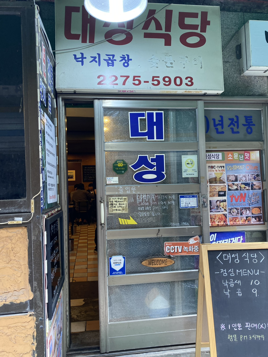 세운 상가를 둘러보다 배가 고픈 사람들을 위해 간단한 식당 추천을 할게요. 세운 상가 입구 골목에 위치한 낙곱새 맛집 대성식당입니다. 골목 안 쪽에 있지만 길찾기 어플로 금방 찾을 수 있어요