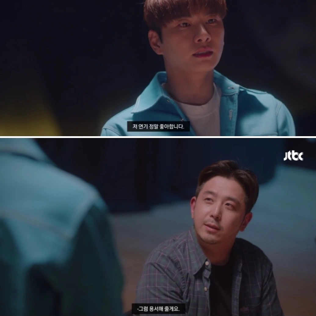 이제 그 몫은 준기가 아닌, 무명배우애게 있는 것이다. 그리고 준기의 고귀한 진실을 알아챈 무명배우는 위 대사를 던지며 사과를 흔쾌히 받아냄과 동시에 준기의 양심을 회복시켜준다.
