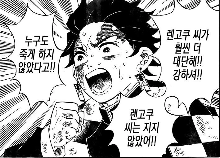시간이 남을 때, 겨우 1기를 다보긴 했지만 위와 같은 이유로 후속작을 볼 리는 만무했다. 하지만 추석 연휴였던가 언젠가, 티비에 무한열차편을 방영해 우연히 보게 되었다. 유치함이란 내재된 선입견 속에서도 인상깊은 구절을 찾을 수 있었고 이는 두 정의의 사도 쿄주로와 탄지로의 이야기다.