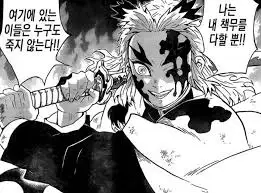(1)쿄주로는 ‘주’라는 직책으로 귀살대에서 비중있는 인물이다. 작중에서 그는 아카자라는 꽤 강한 오니를 상대하게 되는데, 잘은 모르지만 아카자는 맹목적인 살육과 인간을 증오하는 일반적인 오니와는 다르다. 쿄주로와 대결하는 내내 자신의 강인함의 원동력은 불생불사에 있고, 오니가 되면 불로의 몸을 가질 수 있다고 유혹한다. 아카자에게 살육과 싸움은 맹목적인 것이 아니라 자신의 강인함을 확인하는 일종의 자아실현이다.