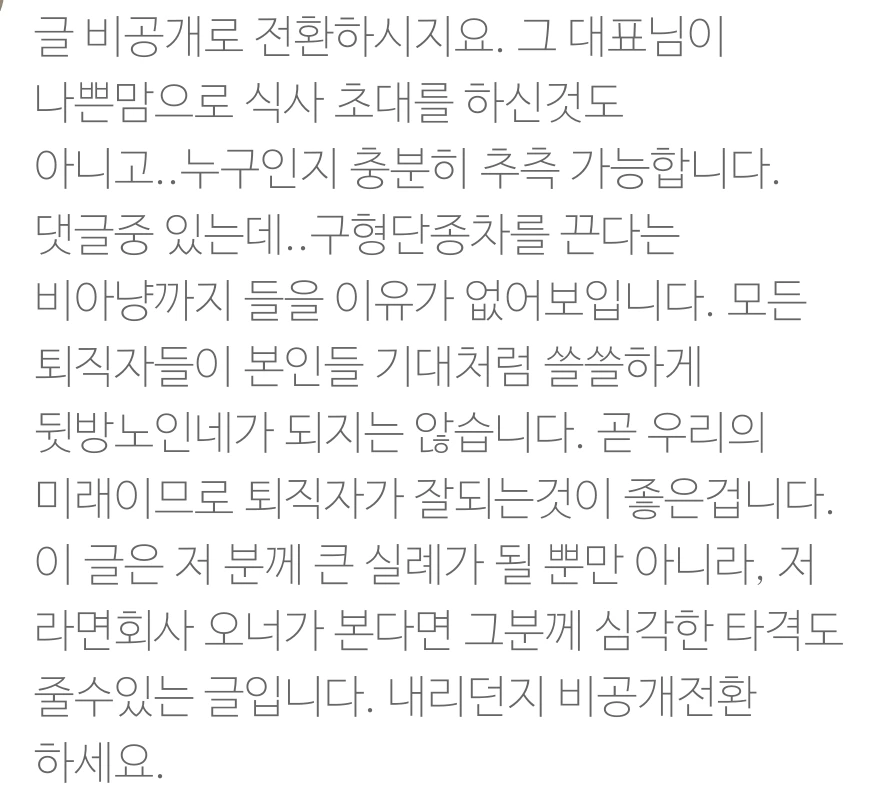 댓글에 쓰인 말들이 모두 구구절절 다 맞는 말이라 마치 내 치부라도 드러난 것처럼 창피한 가운데 그러면서도 지들이 뭔데 내리라 마라야 하는 생각에 아침부터 복잡한 심경이었다.
