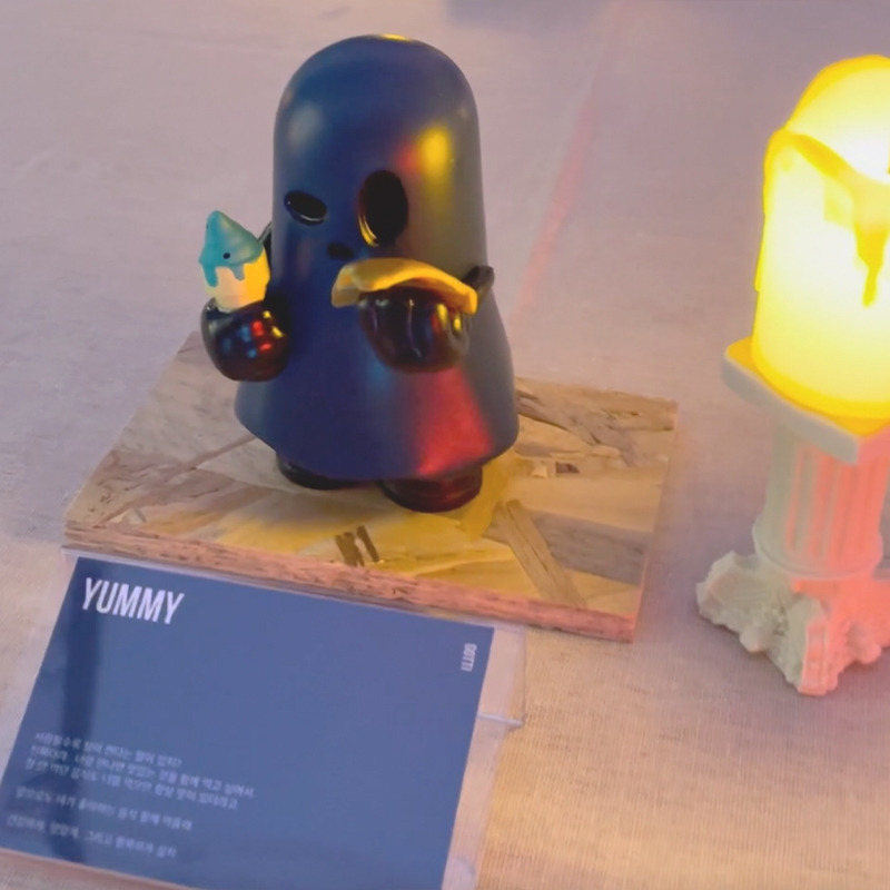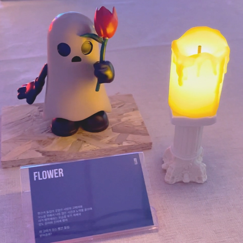 실제로 ' 고스트 '라는 캐릭터를 디자인해서 그 캐릭터를 가지고 작품들을 만들며 나와 쑝이의 추억이 생각날 수 있도록 작품을 만들었고,