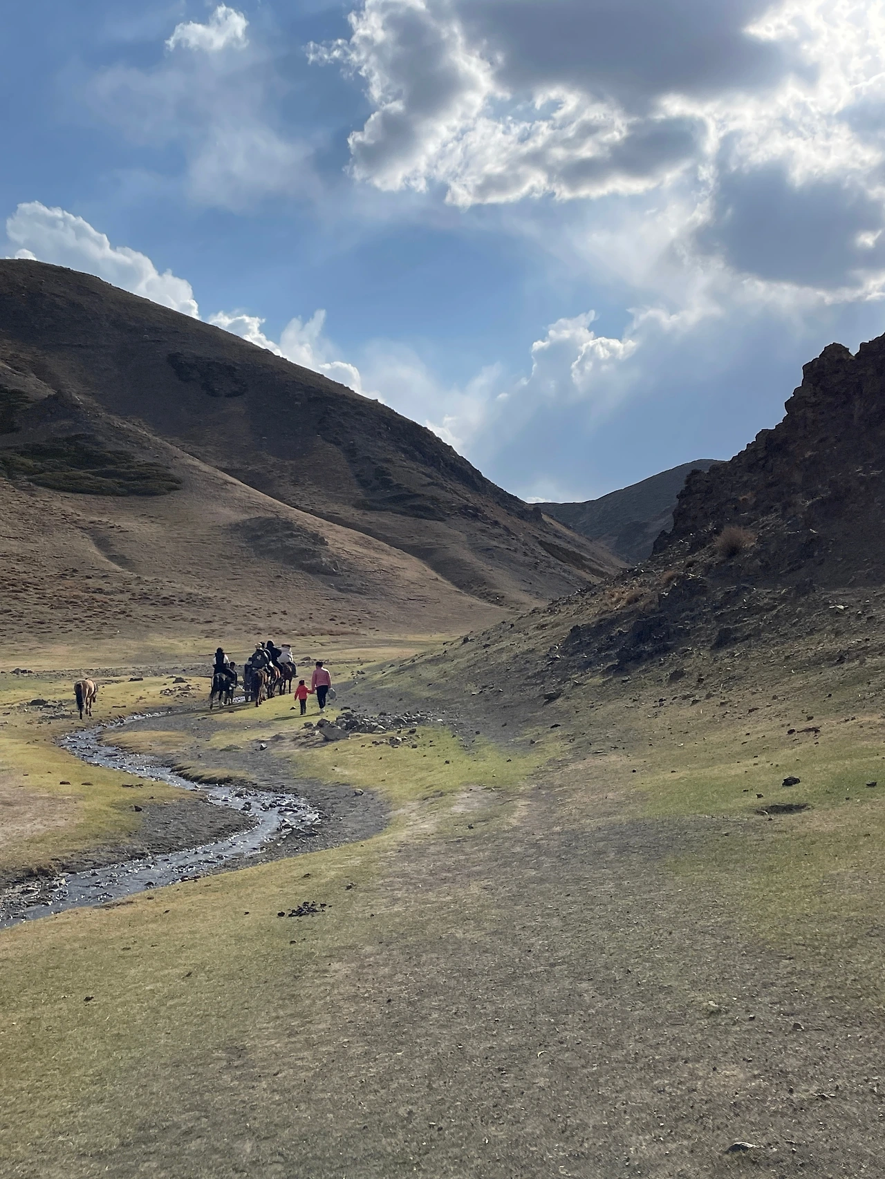 말을 타고 3km를 계속해서 걸어간다. 혹시 몰라서 미러리스 카메라를 차에 두고 왔는데, 내 몽골 여행에서 가장 후회되는 순간을 고르라면 이 날을 고를 것이다. 욜링암은 푸르공에서 봤던 몽골 여행 책으로는 충분하게 설명되지 않았다. 그에 비해 훨씬 아름다웠다. 돌산으로 둘러쌓인 협곡과 파란 하늘, 욜링수(?). 이보다 완벽할 수는 없었다. 욜링암이 내게 아주 극적인 장소로 남아있는 이유는 바가가자링촐로와 차강소브라강에 갔을 때 날씨가 흐려 제대로 보질 못했기 때문일 수도 있다. 여행 마지막 날 푸제가 ‘차강소브라강 날씨 좋았으면 조금 더 예뻤을 수도 있어'라는 말을 남긴 걸 보니, 평소에는 굉장히 아름다운 곳인가보다. 물론 우리가 갔을 때 예쁘지 않았다는 건 아니였다.