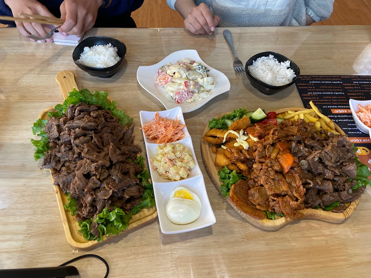 유진언니가 푸제에게 고기가 없어도 괜찮다고 얘기했는데, 당시 몽골 현지식에 예민할 대로 예민해진 준수와 내게 삼겹살은… 정말 사막에서 오아시스를 먹는 기분이었다. 그래서 우리 둘 다 굳은 얼굴로 ‘이젠 안 괜찮아'라는 대답을 했던 걸로 기억한다. 결국 삼겹살을 못 찾고 닭볶음탕을 먹었지만. 닭고기가 어디인가.