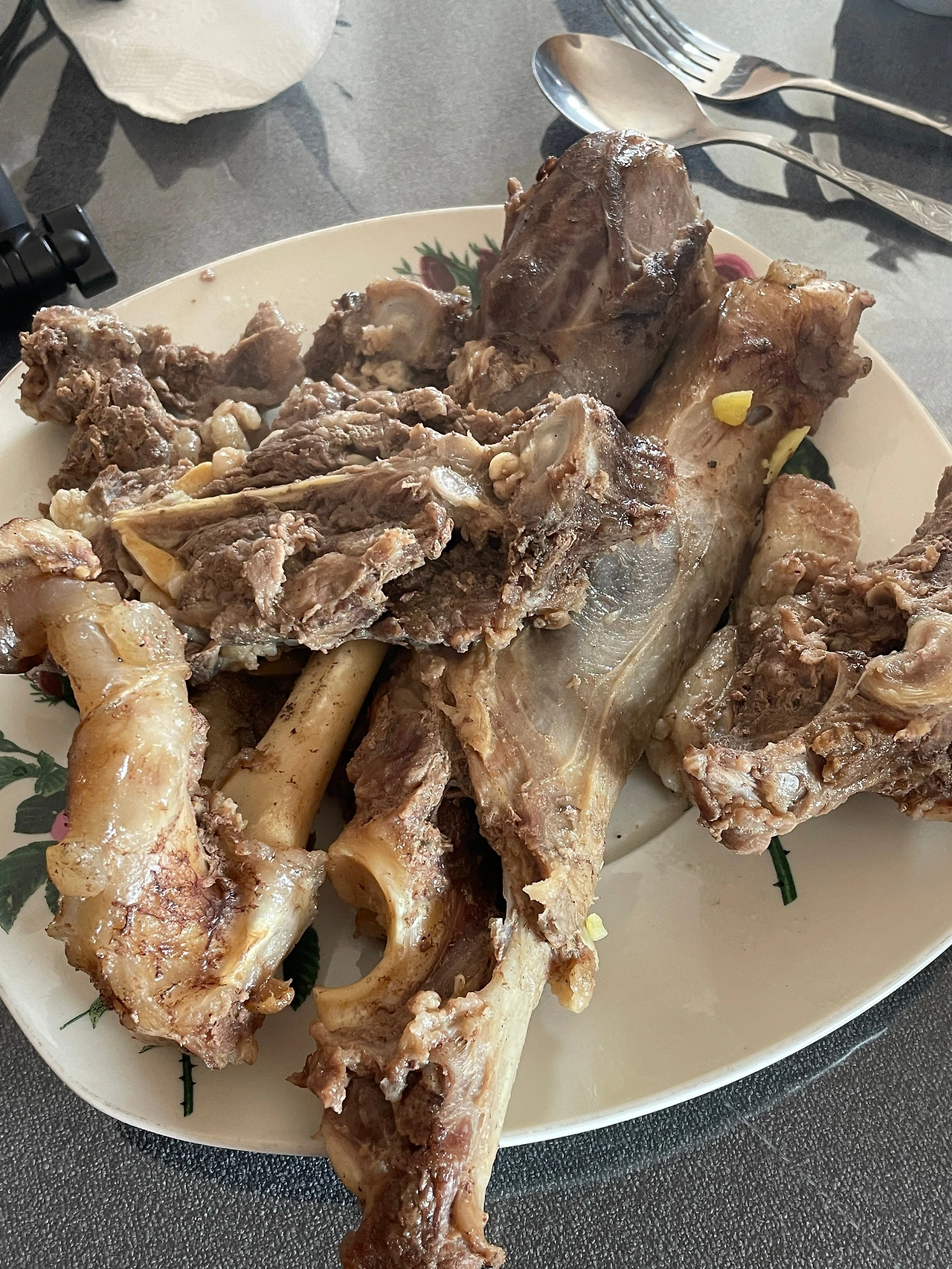 야크고기는 우락부락한 야크의 비주얼처럼 굉장히 씹기 힘들고 질겼으며, 낙타를 딱딱하게 굳혀 만든 낙타고기는 굉장히 기름지고, 약간 사골국에 들어갈 것 같은 비주얼의 고기였다. 사골국 맛이 나는 수테차와 잘 어울리는 조합이었다. 나는 한 입 먹고 내려놨지만 준열이가 끝까지 남아 먹었던 걸로 기억한다. 사실 준열이는 대부분의 식사에서 끝까지 남아있는 1인이었다.