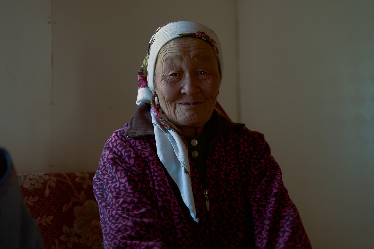 잠시 점심을 먹으러 들렀던 곳에서 흔쾌히 우리를 반겨준 집은 돌 산 아래에 사는 카자흐스탄 가족이었다. 역시나 말은 통하지 않았다. 푸제는 늘상 하듯 마당에 테이블을 펴고, 점심을 준비하기 시작했다. 그런데 지아와 유진이 사라져 찾아보니 집 안으로 초대를 받은 것이었다. 따라서 들어가니 할머니가 따뜻한 눈으로 나를 반겨주었다.