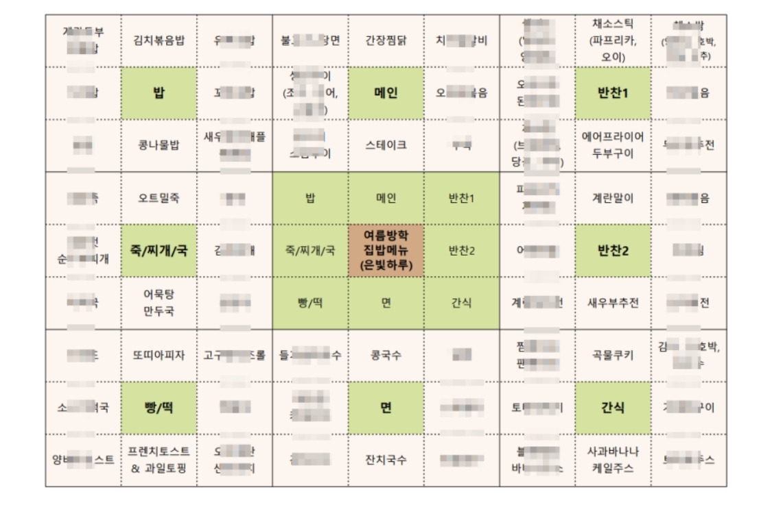 집밥만다라트는 우리 가족만의 메뉴판이다.