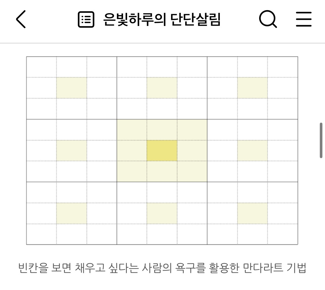 * 집밥만다라트가 필요하신 분들은 네이버블로그 “은빛하루의 단단살림”이나 아래 네이버카페 "단단살림"을 참고해 주세요. 이곳에서 만다라트양식도 다운로드 가능합니다. 감사합니다. *