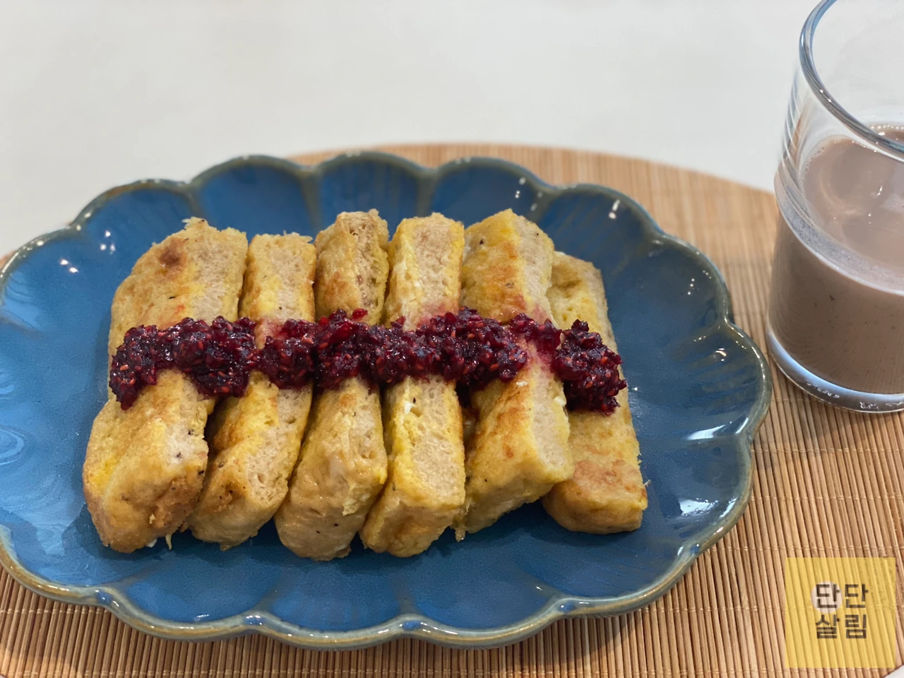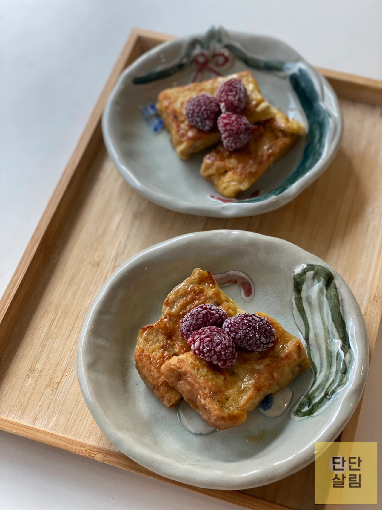 통밀빵을 계란물에 퐁당 담갔다가 굽기도 하고 메이플 시럽을 뿌려주거나