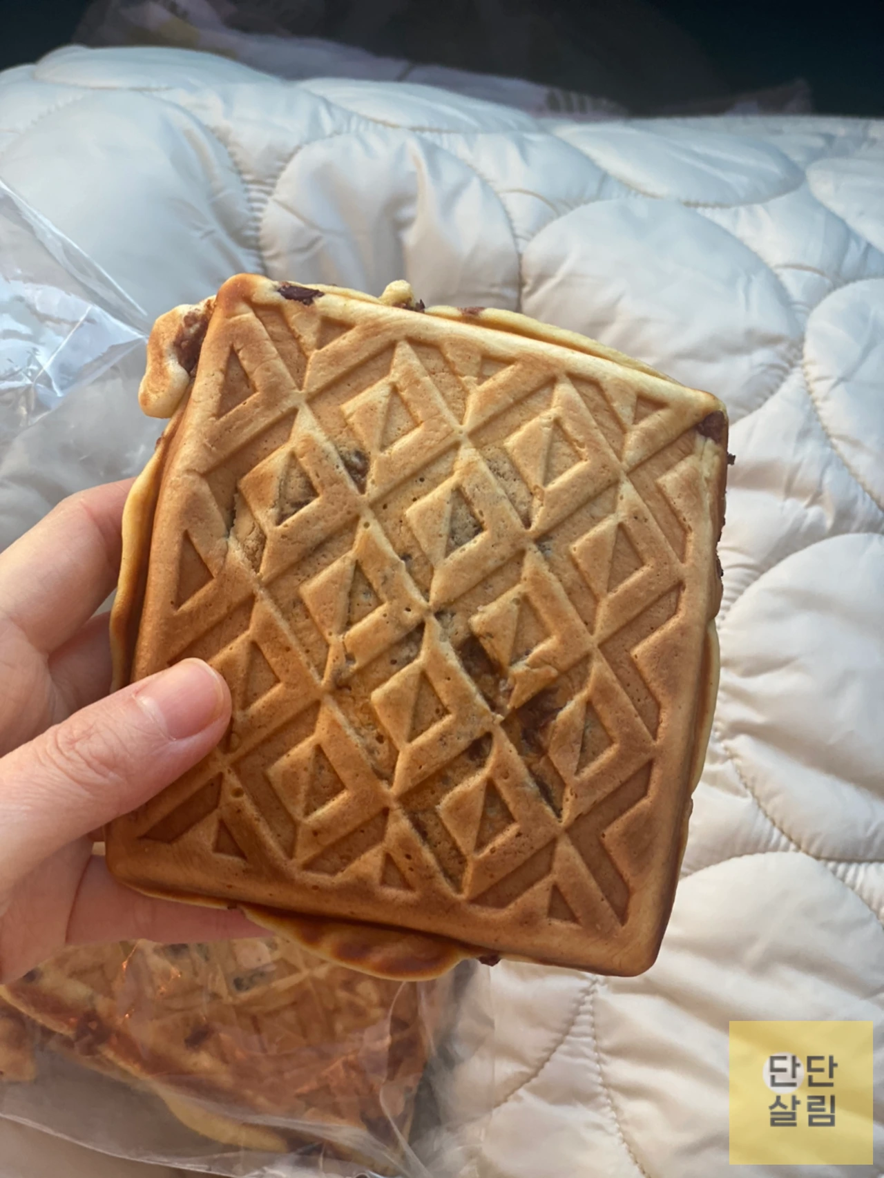 붕어빵틀은 없으니 와플틀에 한살림 핫케이크 가루 넣고 팥조림 넣으면?