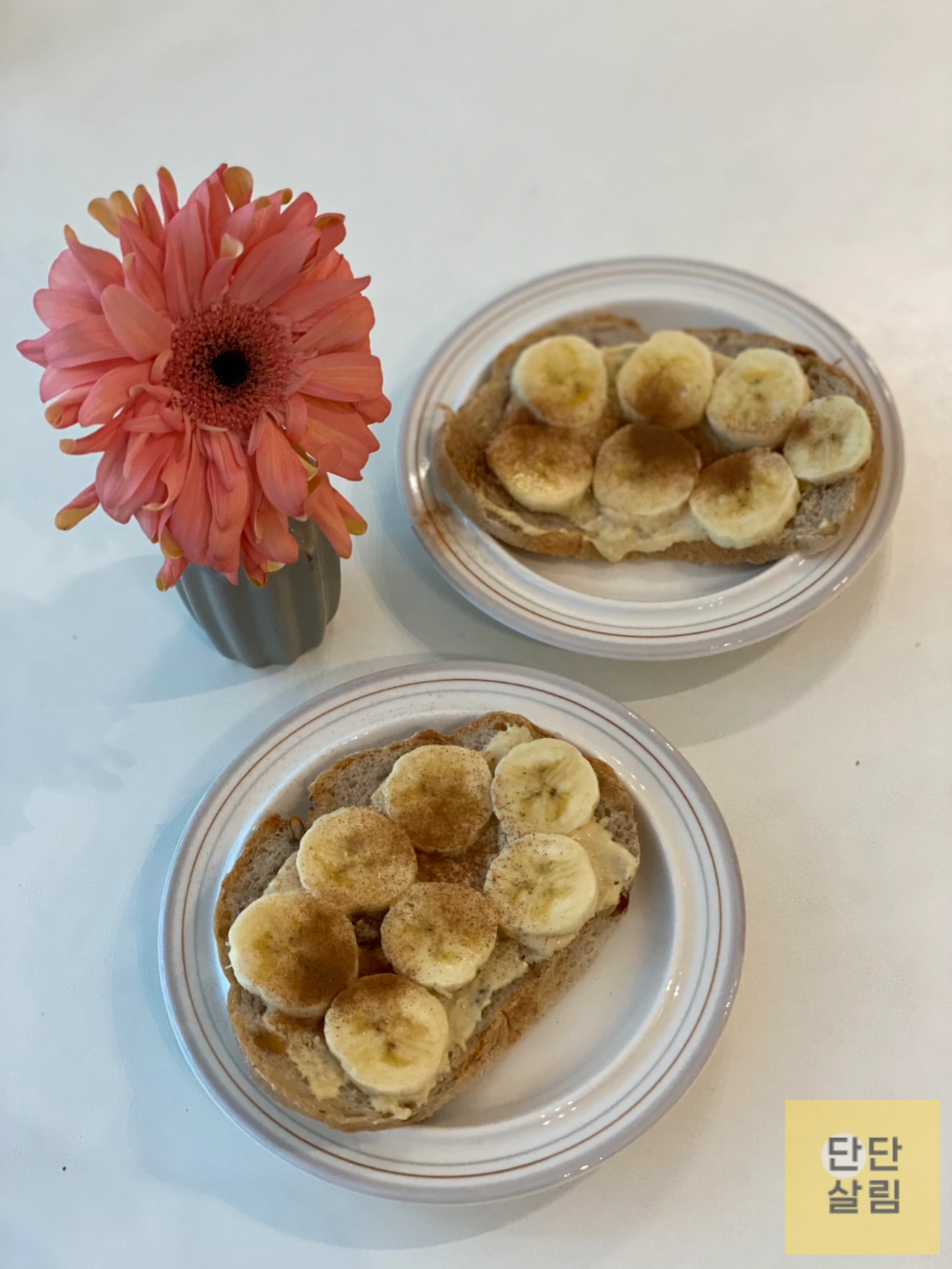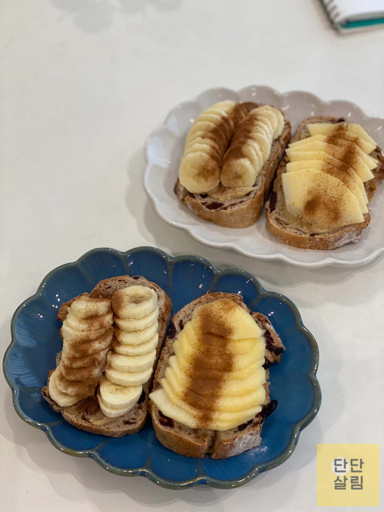 곡물호밀빵 위에 요거트, 땅콩잼, 후무스 등을 바르고 오픈 샌드위치도 만들었다.